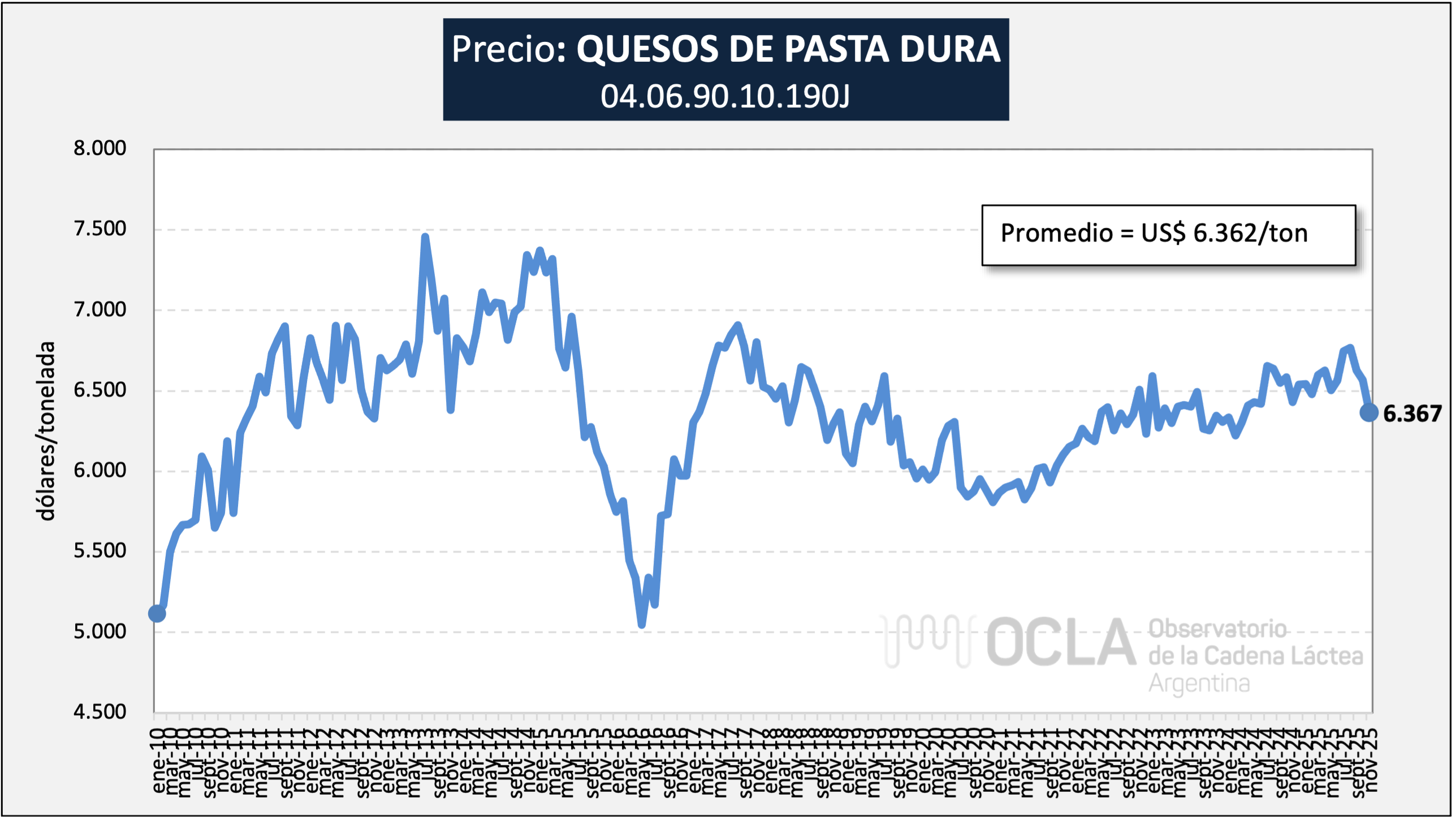 Precios promedios de exportaciones argentinas de Quesos de Pasta Dura (Posición: 0406.90.10.190J)