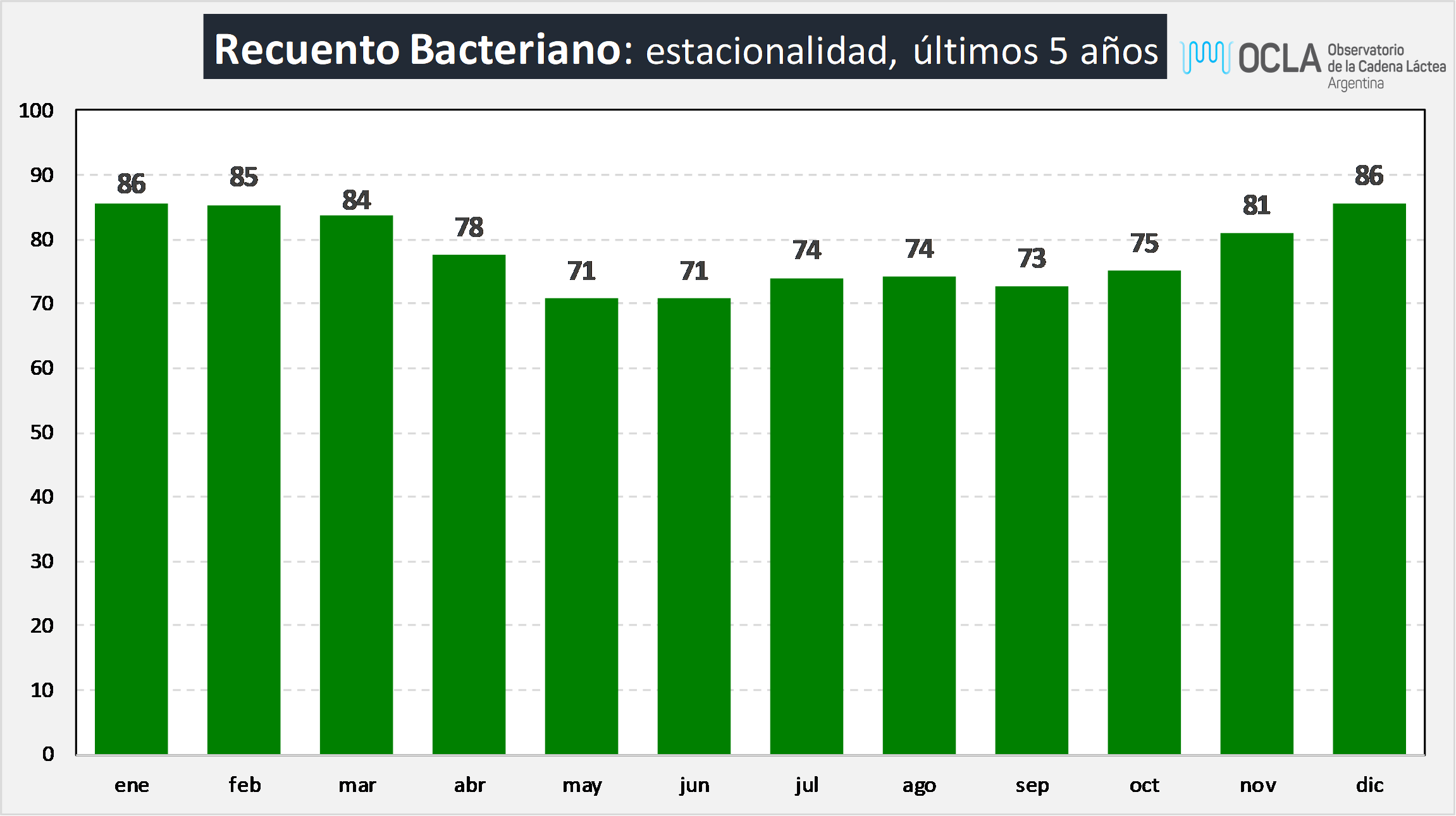 Recuento Bacteriano: estacionalidad, últimos 5 años