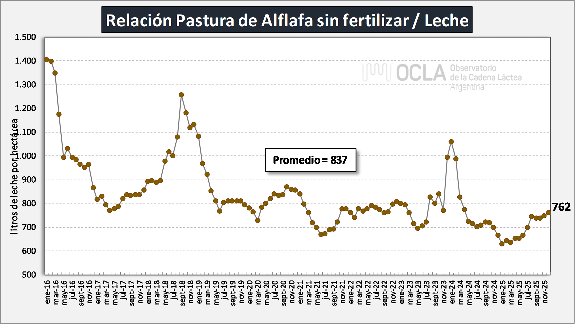 Relación Alfalfa sin fertilizar/Leche