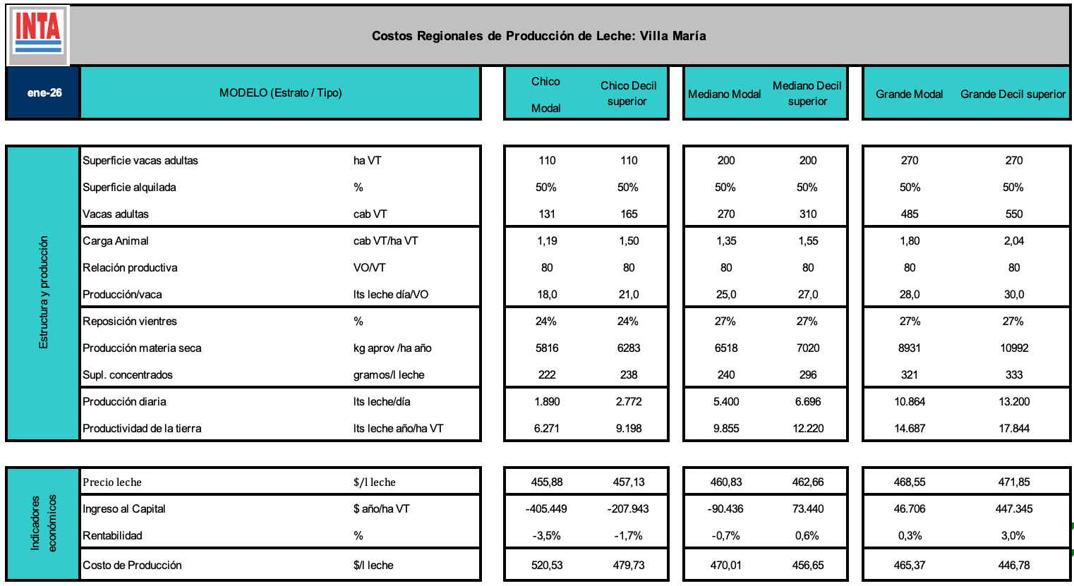 Costos Regionales de Producción - Cuenca Villa María