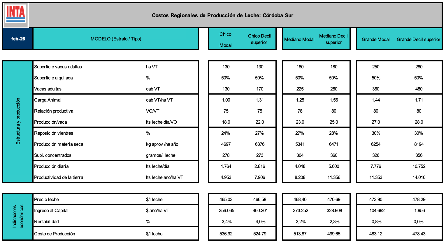 Costos Regionales de Producción - Cuenca Córdoba Noreste