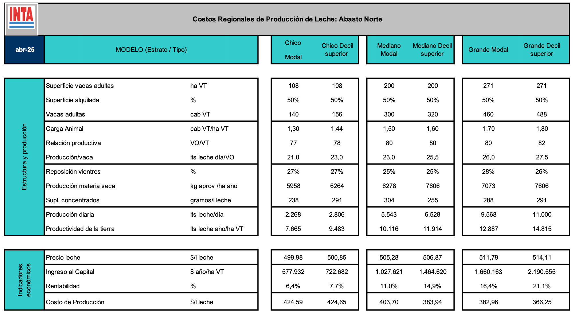 Costos Regionales de Producción - Cuenca Abasto Norte