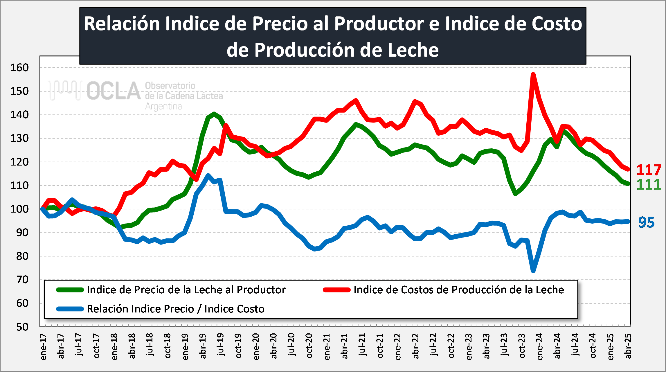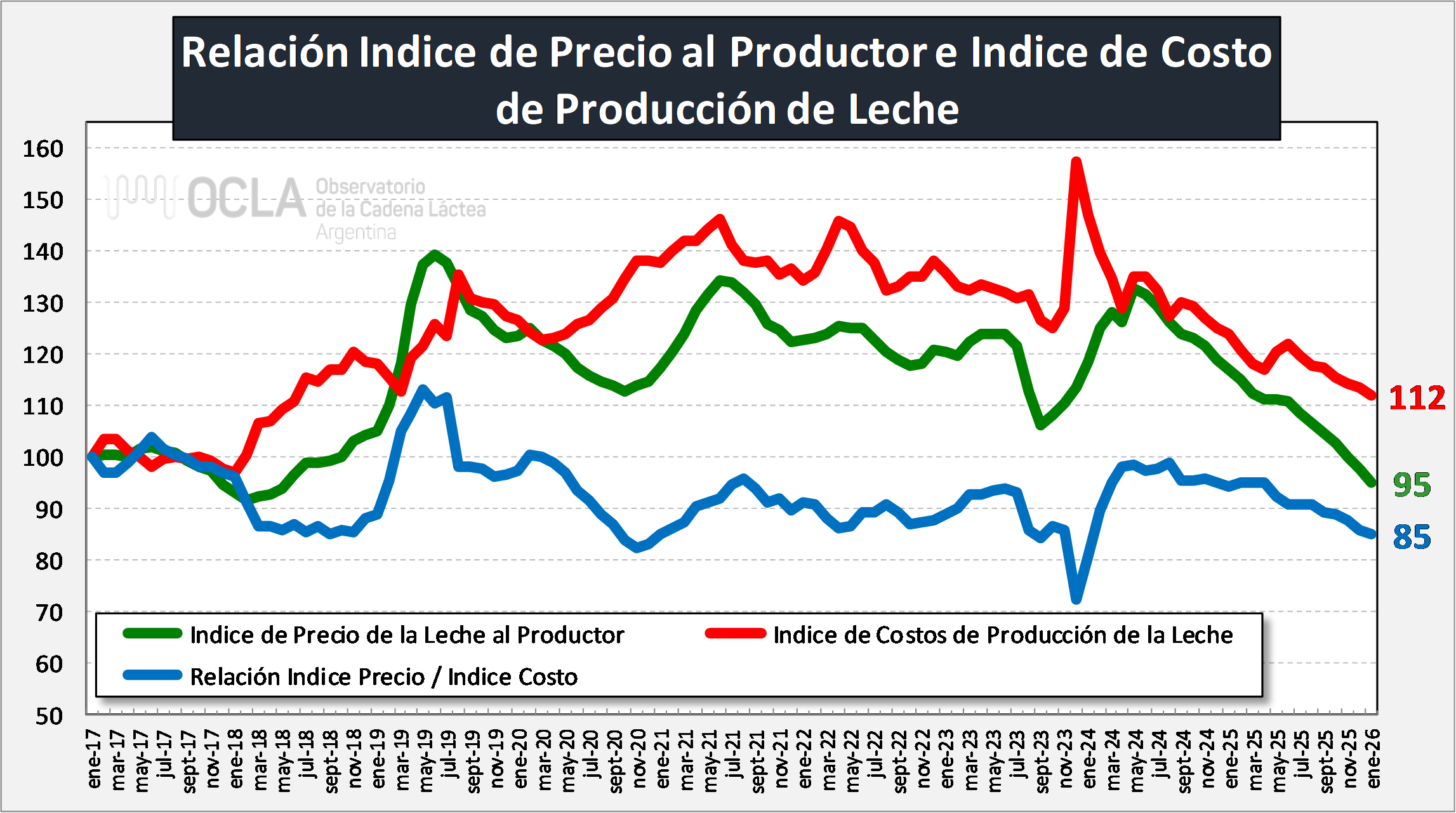 Relación Indice de Precio al Productor e Indice de Costos de Producción de Leche