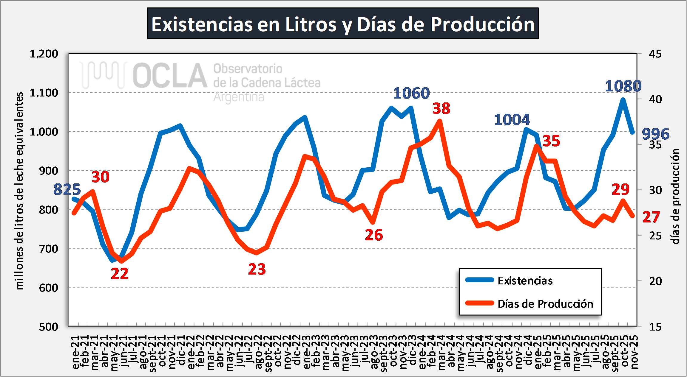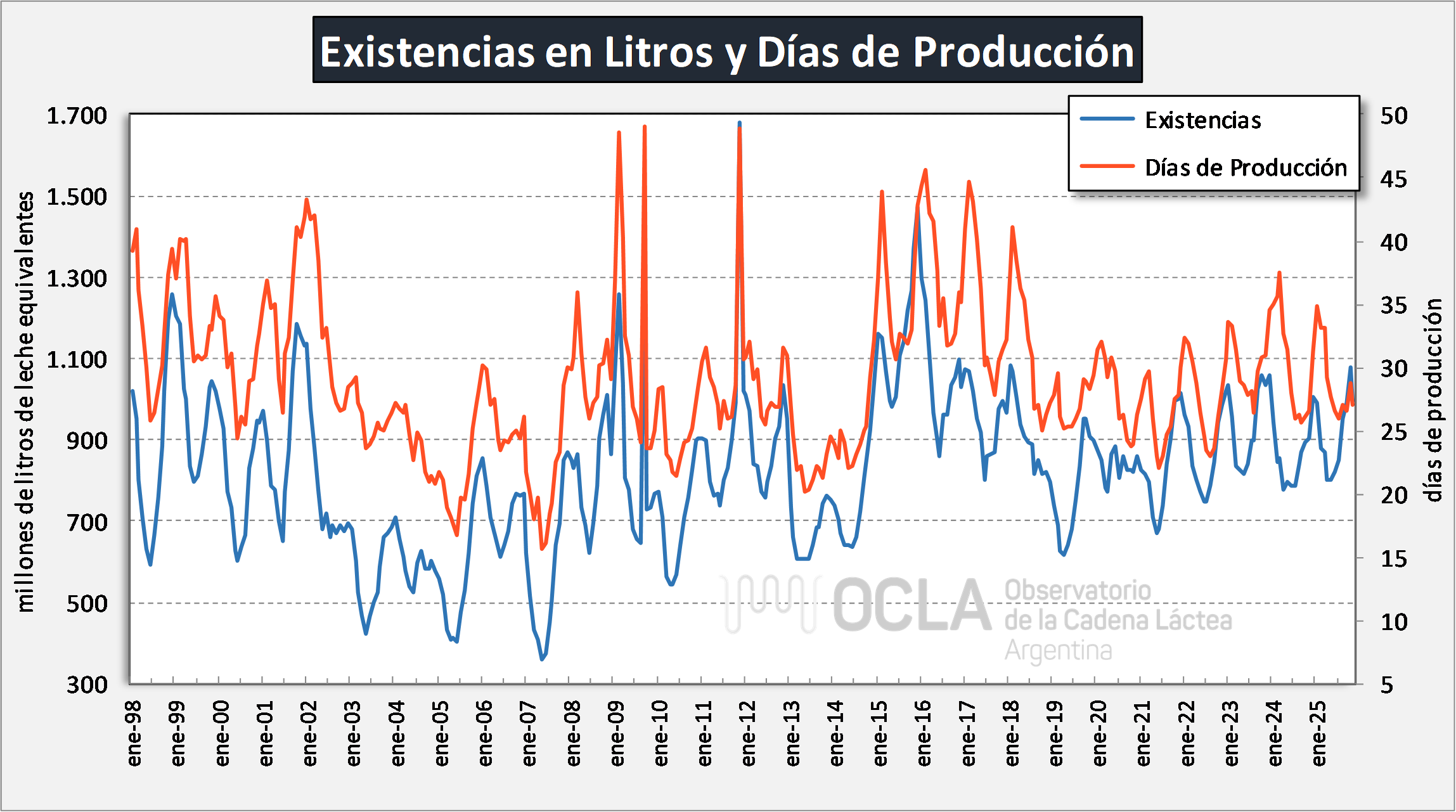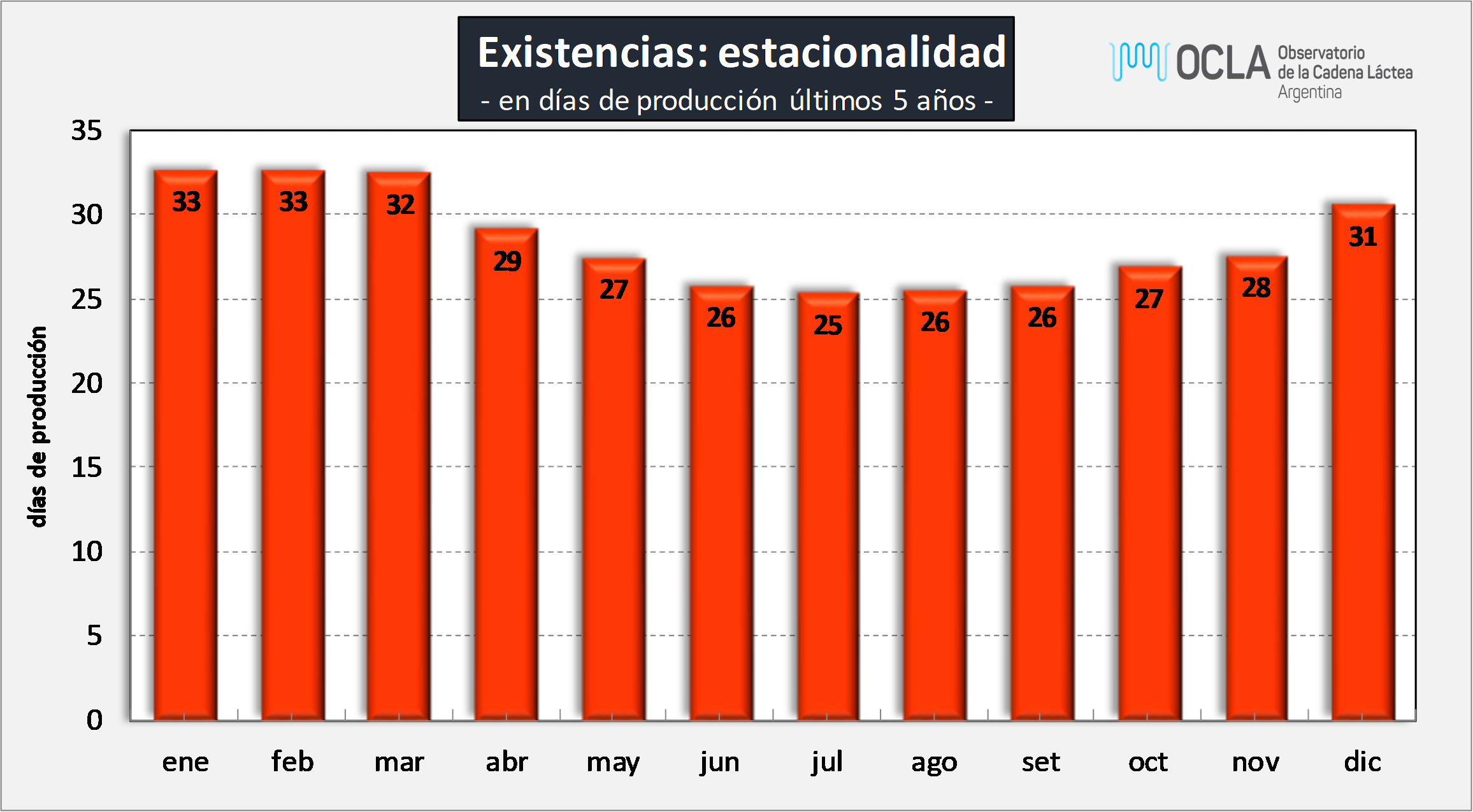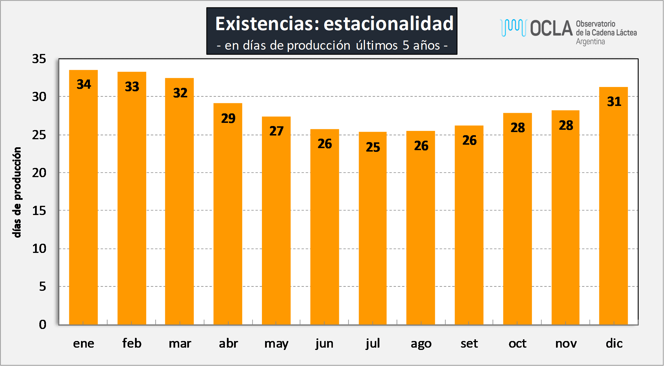 Existencias: Estacionalidad en días de producción, últimos 5 años