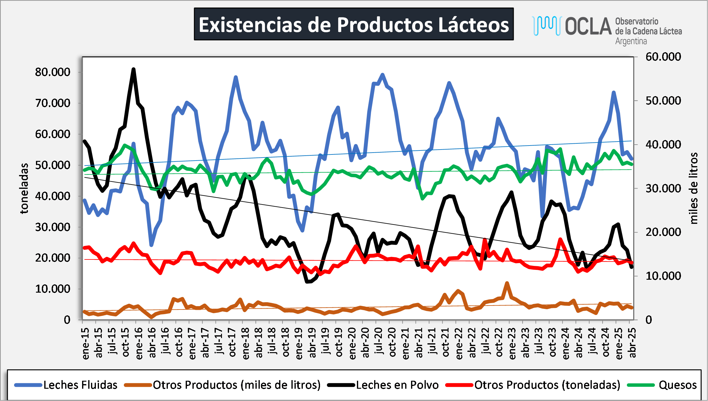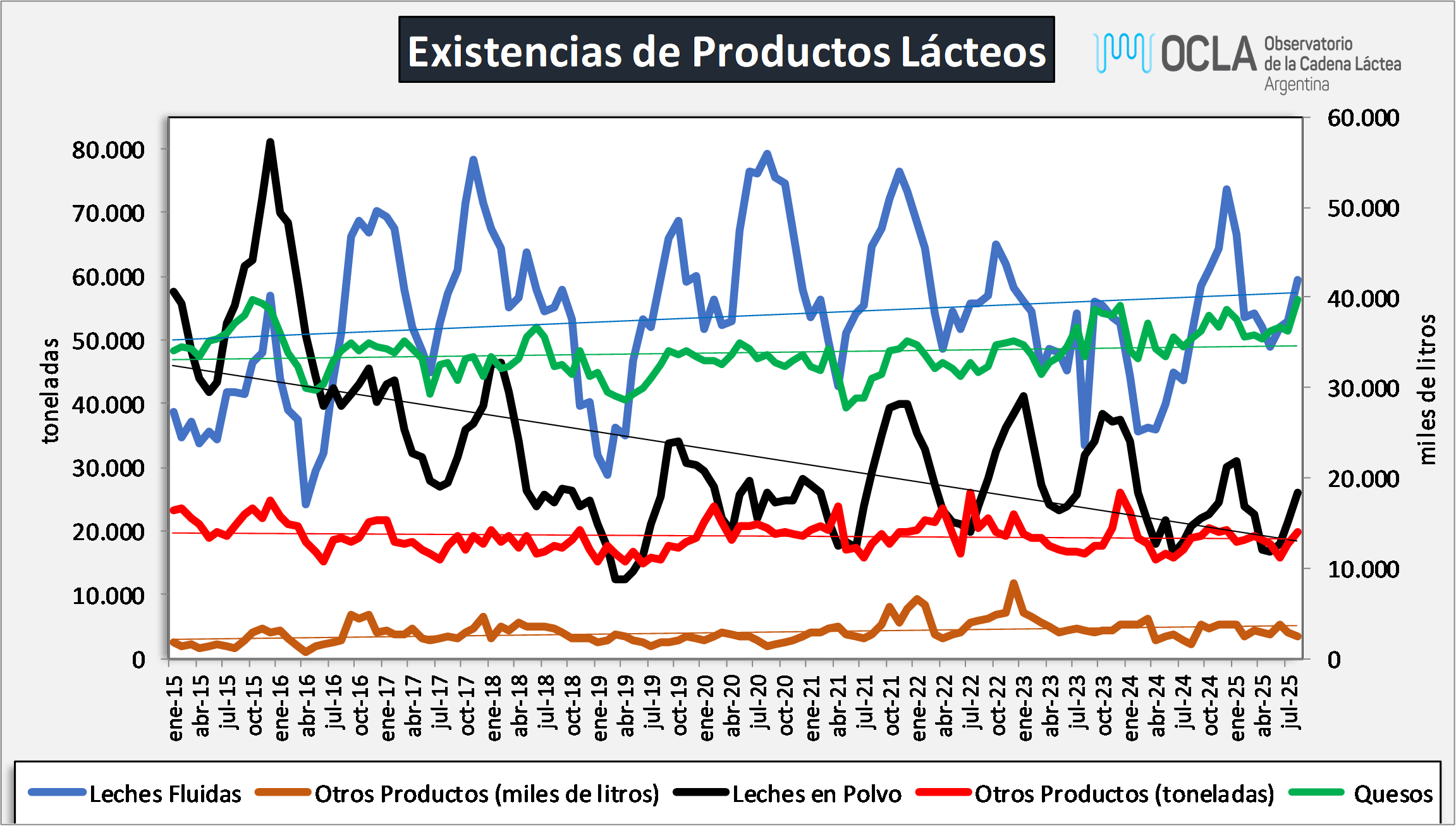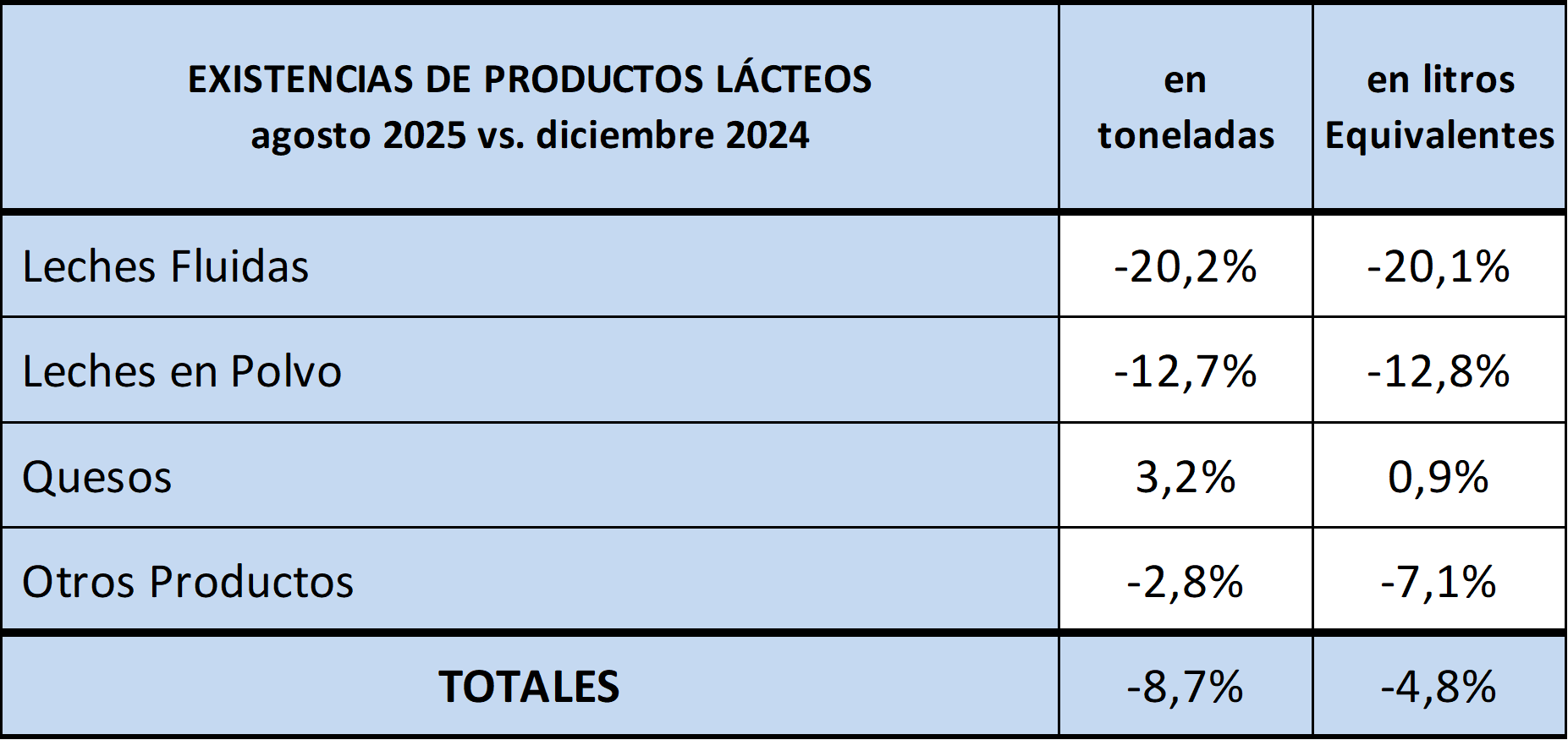 Existencias de Productos Seleccionados - último mes - litros equivalentes