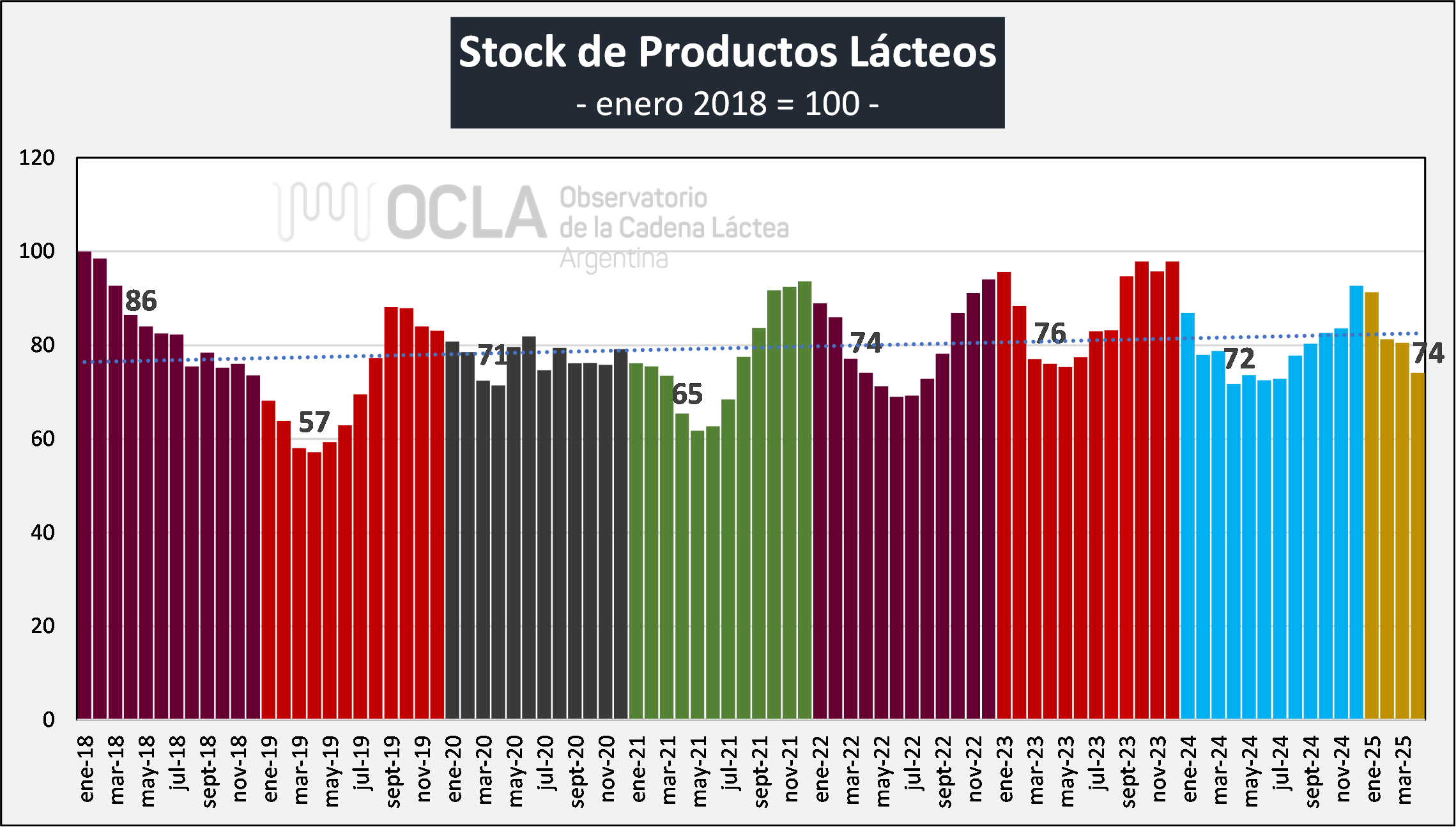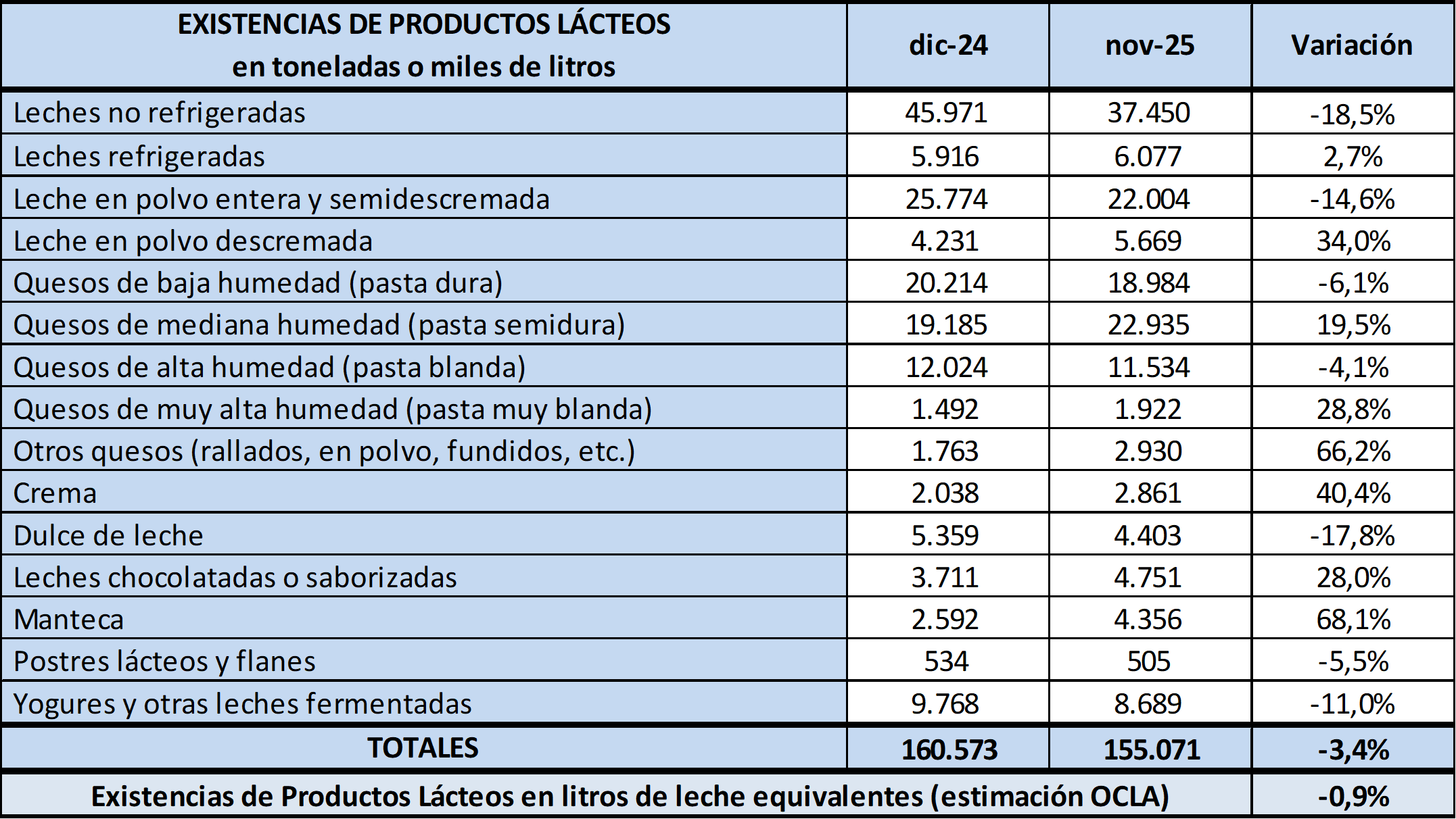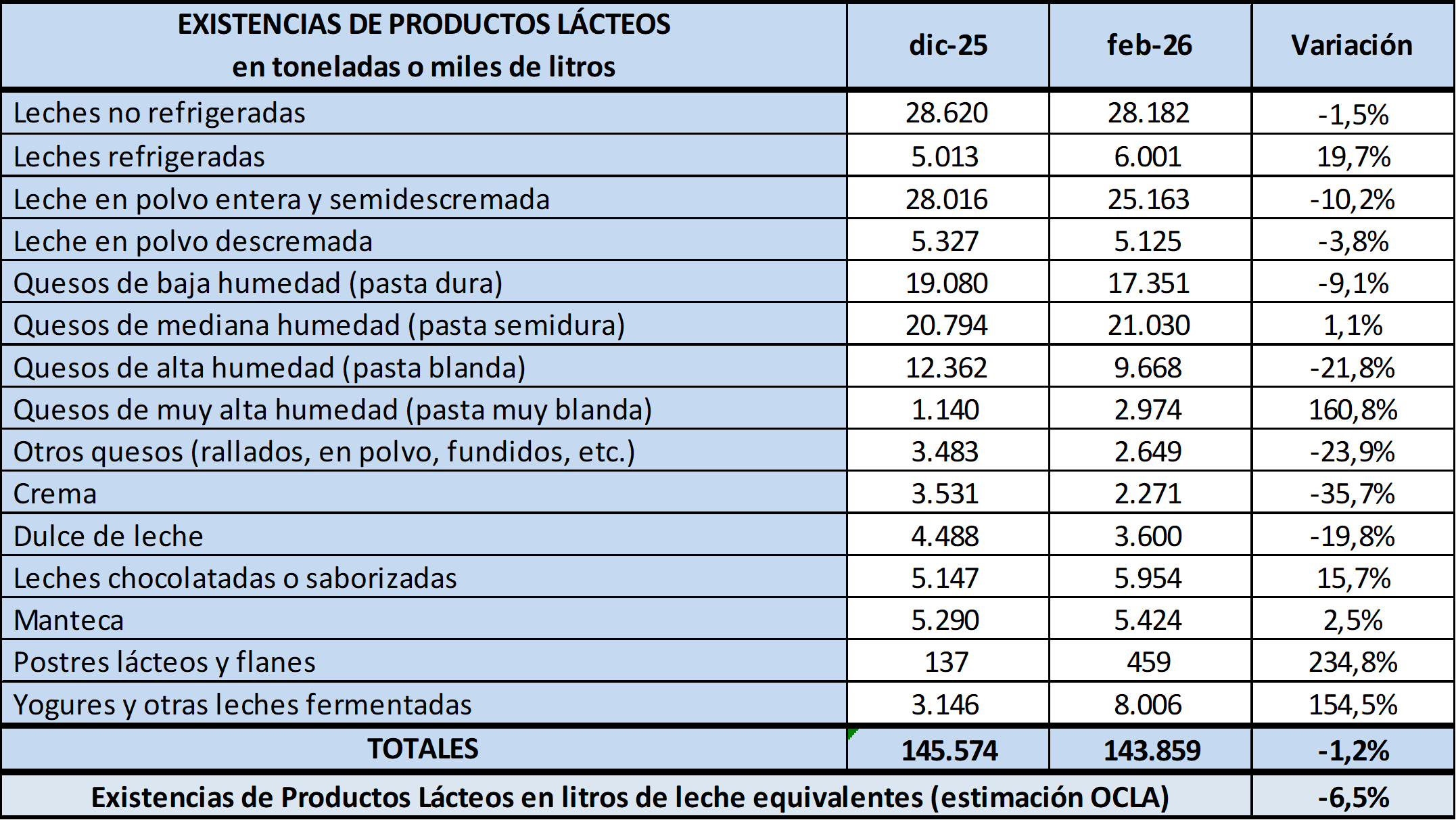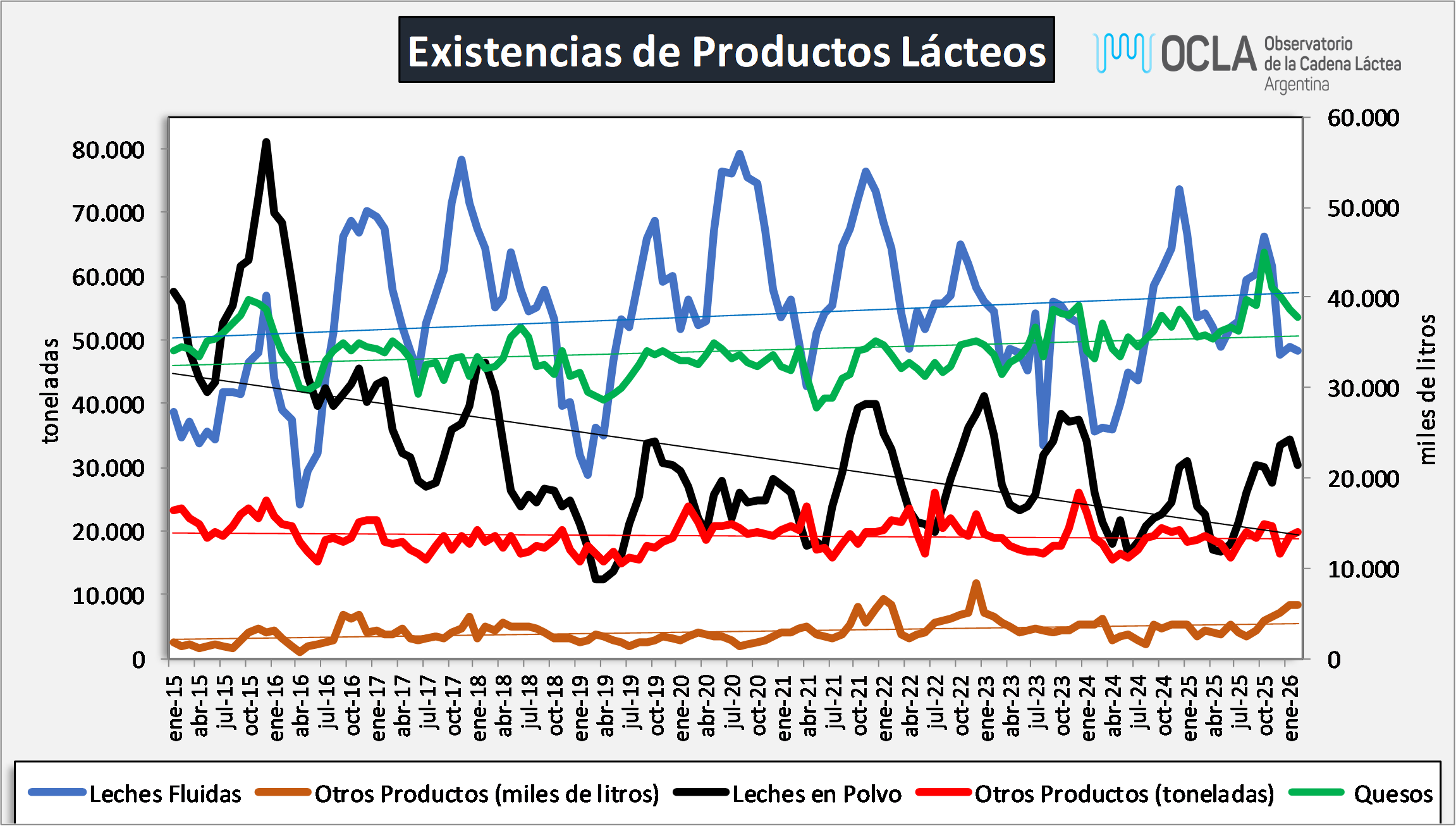 Existencias de Productos Seleccionados - último mes - litros equivalentes