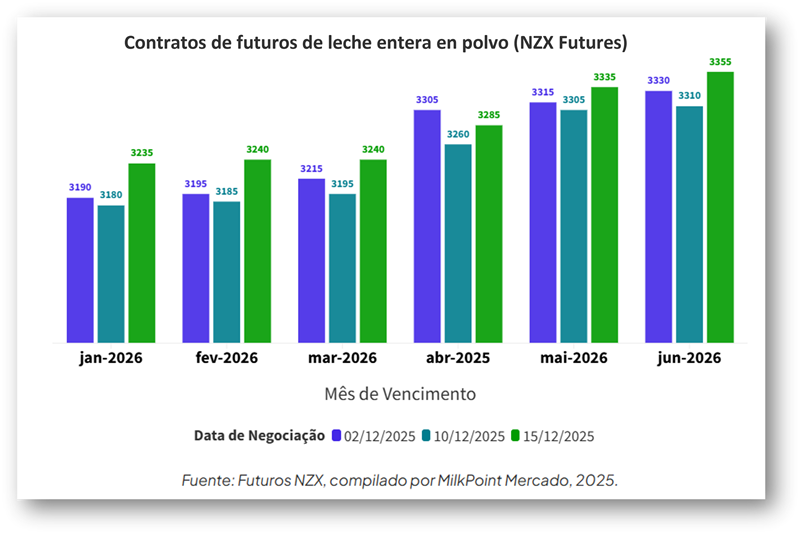 La leche entera en polvo (LPE) registró la mayor caída en esta subasta, con una caída del 5,7%, lo que situó el precio promedio en USD 3.161 por tonelada. Con este movimiento, el producto alcanzó su nivel más bajo desde julio de 2024, y no se habían observado caídas de esta magnitud desde septiembre.