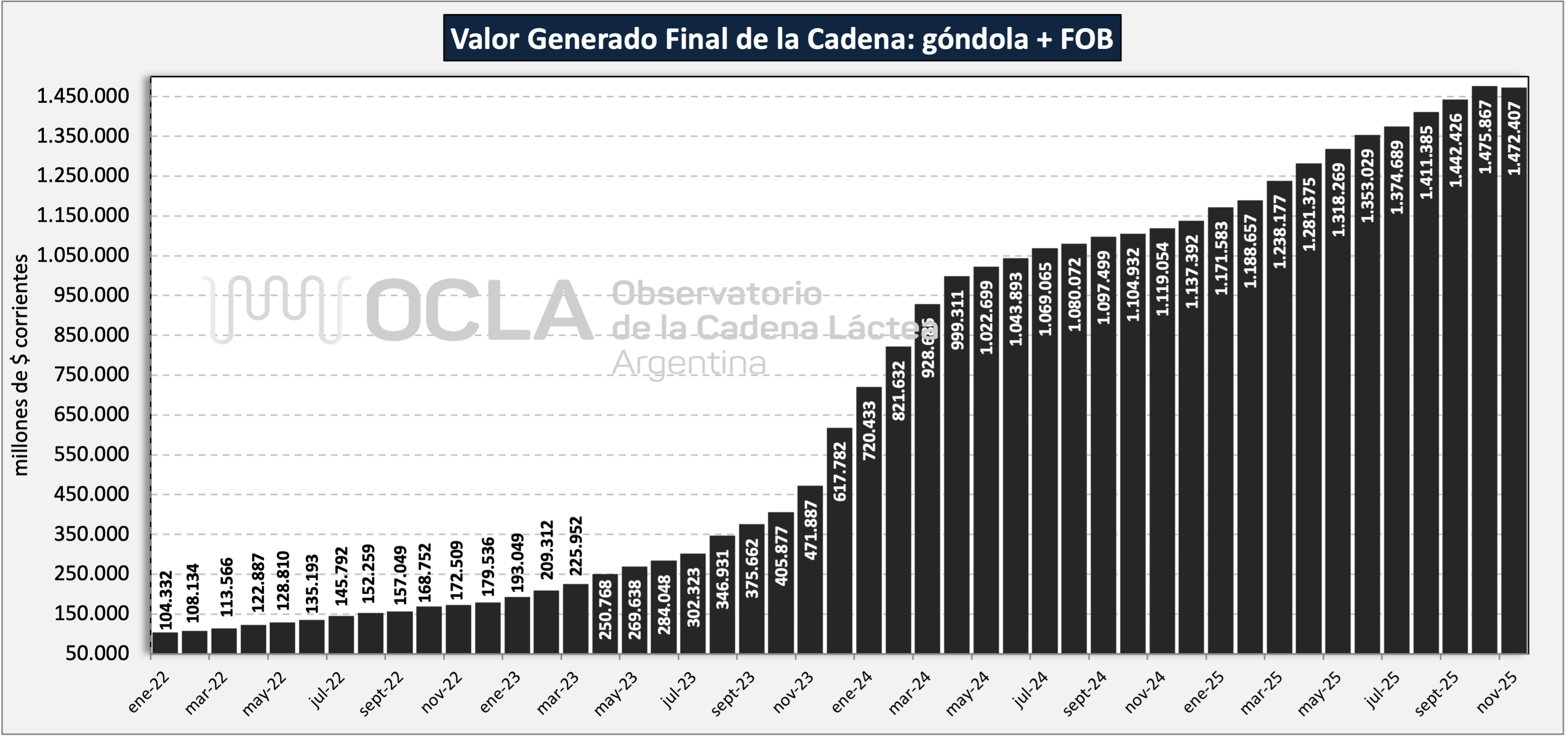 Producción/Procesamiento (millones de litros/mes).