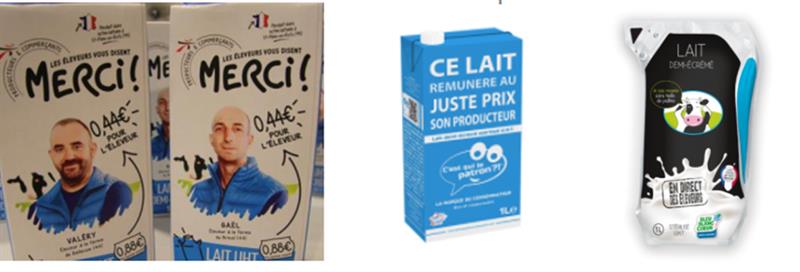 También en 2016, una quincena de explotaciones familiares de Bretaña, País del Loira y Nouvelle-Aquitaine se unieron para crear su propia marca “En direct des éleveurs” (Directamente de los ganaderos). La leche se comercializa en una bolsa 100% reciclable y se vende en el mercado a 94 centavos, lo que les permite a los ganaderos ganar 1,5 veces el salario mínimo interprofesional.