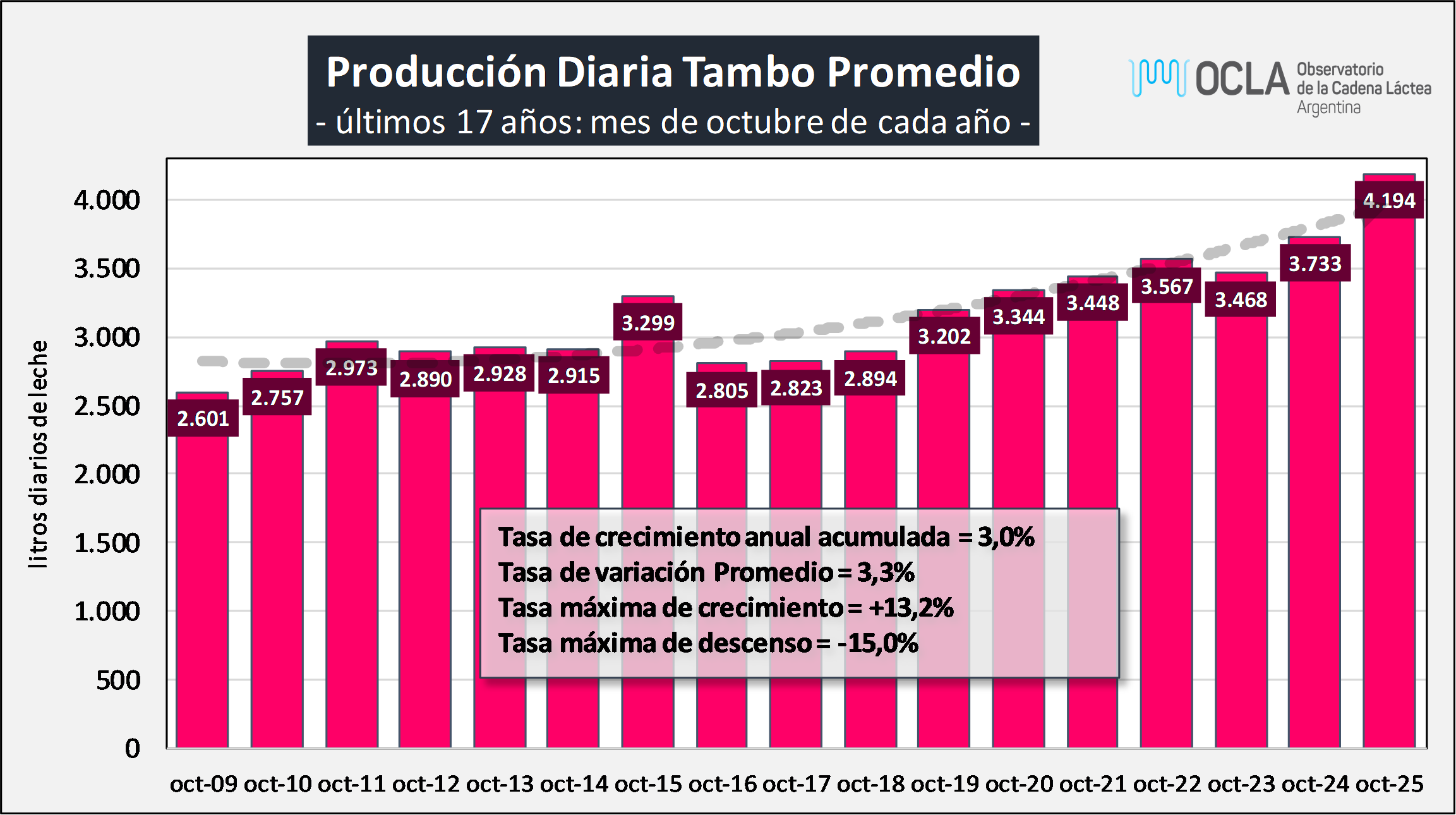 Producción Mensual de Leche / días del mes / cantidad anual de tambos = litros/tambo/día
