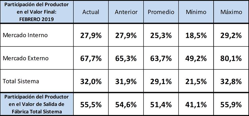Participación del Productor y de la Industria en la Cadena de Valor – a febrero de 2019 25/3/2019