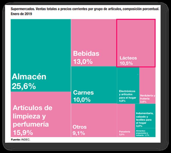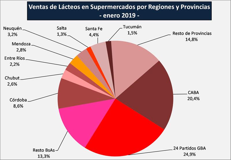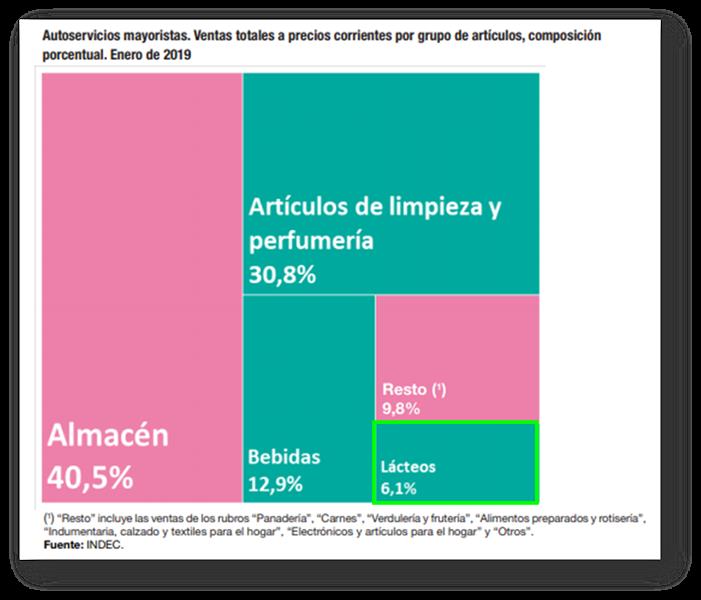 Venta de Lácteos en Supermercados y Autoservicios Mayoristas 26/3/2019Ventas Totales en Supermercados a precios corrientes y a precios constantes Las ventas a precios corrientes para enero de 2019 relevadas en la Encuesta de Supermercados sumaron un total de 45.485,0 millones de pesos, lo que representa un aumento de 40,0% respecto al mismo mes del año anterior. Las ventas a precios constantes de diciembre de 2016, durante enero de 2019, sumaron un total de 23.920,8 millones de pesos, lo que representa una caída del 10,5% respecto a enero de 2018. Respecto a los medios de pago: ![]() Cabe recordar la estructura comercial de los lácteos, donde el 21% se destina a Mercado Externo, 79% a Mercado Interno, de ello el 4% del total nacional son Ventas Industriales e Institucionales, el 7% aproximadamente para Hoteles, Restaurantes y Catering, con lo que el 67% de la producción nacional se comercializa por medio de la venta minorista, que se reparte más o menos en tercios entre Super/Hipermercados, Autoservicios y Mayoristas en venta minorista y Negocios de Proximidad. Respecto a la venta de lácteos en los supermercados según los datos de INDEC, fueron de $ 4.755,3 millones para el mes de enero de 2019, lo que representa una caída del 7,2% respecto al mes anterior y un incremento del 38,7% más que enero de 2017 (la inflación anual fue de 49,3%). Las ventas de litros de leche equivalentes de febrero 2019 estuvieron en el orden de los 668 millones de litros a un valor de $ 33,23/litro, es decir, $ 22.198 millones con lo que los super e hipermercados participaron con el 21,5% de las ventas totales (mercado interno y externo) y el 27,9% de las ventas minoristas (448 millones de litros a $ 38,14 por litro equivalente). Como puede observarse en el gráfico siguiente la participación de los lácteos en la venta de los supermercados, incidió en un 10,5% de sus ventas totales, un 0,1% menos que igual mes del año anterior. ![]() La distribución de esas ventas en el territorio nacional se visualiza en el gráfico siguiente, donde es de remarcar que la provincia de Buenos Aires representa el 58,6% de las ventas de lácteos en supermercados de todo el país y si agregamos Córdoba y Santa Fe, se concentra en esas tres provincias casi tres cuartas partes de las ventas totales. ![]() Si vemos la evolución de las ventas de lácteos en supermercados, actualizadas por el índice de precios al consumidor, podemos observar un tendencia decreciente desde 2016 a la fecha, lo que indica que en este rubro, los otros dos canales minoristas (autoservicios minoristas y mayoristas y negocios de proximidad), le han reducido participación a las grandes cadenas. ![]() INDEC ha incorporado en su publicación el canal de autoservicios mayoristas, el mismo se caracteriza por comercializar sus productos al por mayor tanto en forma directa a los consumidores finales como con fines de reventa. Las tareas realizadas se orientaron a establecer una metodología para determinar las ventas totales que se deben computar para observar la evolución de las ventas a los consumidores finales que adquieren los productos por este canal de comercialización. El cuestionario aplicado a las empresas de autoservicios mayoristas es el mismo que el de la encuesta de supermercados y tiene en cuenta solo aquellas ventas con facturas o tickets emitidos por un responsable inscripto a un consumidor final, monotributista y/o exento. A continuación se presentan los gráficos que muestran la participación de los lácteos en ese canal comercial y la distribución regional: ![]() elaborado por el OCLA con datos del Informe de INDEC