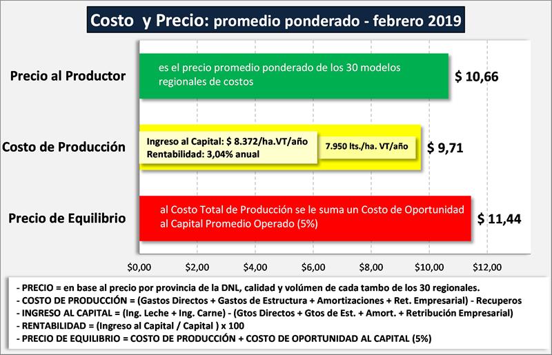 A partir del mes de febrero de 2019, los costos de producción de leche se estiman empleando los modelos productivos definidos en el año 2016, actualizados y validados durante el segundo semestre del año 2018, mediante talleres llevados a cabo en cada cuenca lechera según provincia con referentes técnicos del sector. En todos los casos, se procuró que los resultados obtenidos fueran sobre la base de modalidades de producción predominantes en cada cuenca (en condiciones normales).