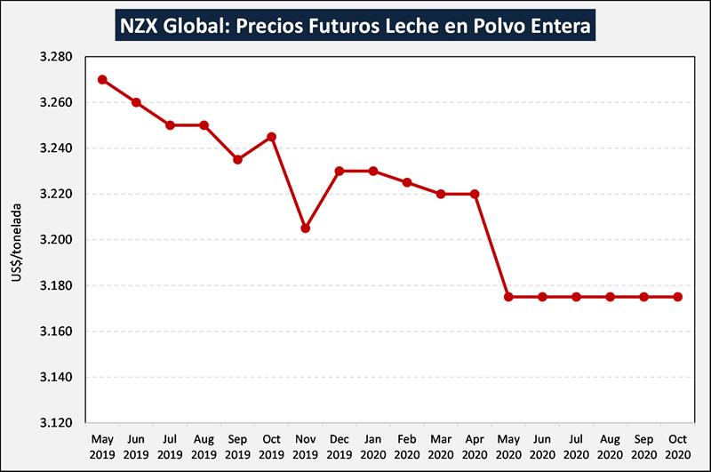 Futuros y Opciones del NZX Global Dairy – Precios de liquidación de derivados lácteos: LECHE EN POLVO ENTERA