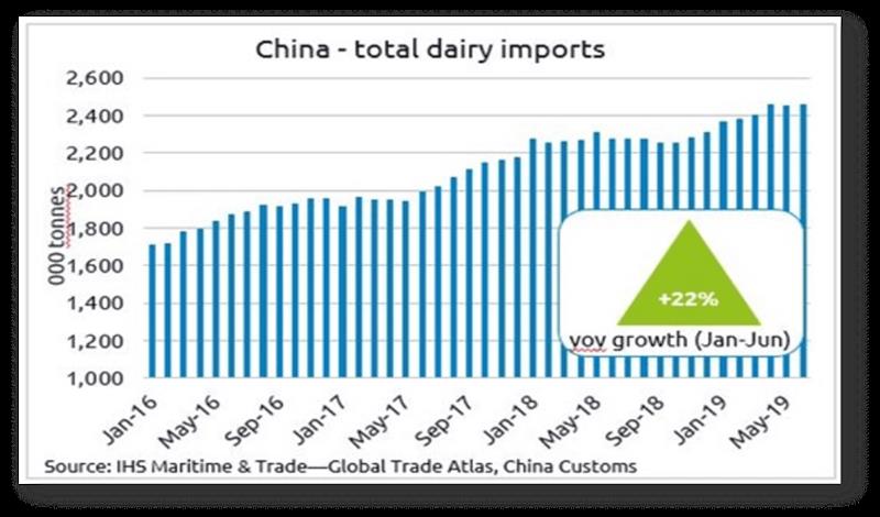 PERSPECTIVAS DEL MERCADO LÁCTEO MUNDIAL 12/9/2019· A nivel mundial, se espera que el crecimiento de la producción de leche para 2019 sea limitado. El clima es el principal problema que limita el crecimiento, aunque los bajos márgenes en los Estados Unidos y Australia también están jugando un papel. Nueva Zelanda ha comenzado su nueva temporada con una nota alta, aunque los recientes resultados financieros de Fonterra, que conducen a la ausencia de un pago de dividendos este año, pueden ejercer cierta presión sobre los márgenes de los agricultores de Nueva Zelanda. · Se estima que la disponibilidad de productos en los principales países exportadores está bien equilibrada. Hay una acumulación de existencias de queso en los EE. UU., ya que los altos precios y las tensiones comerciales están limitando sus exportaciones. · La demanda de importación de China ha sido fuerte hasta ahora en 2019, con la excepción del suero. No está claro si las importaciones más elevadas han llevado a una acumulación de existencias o simplemente han reabastecido las existencias después de importaciones inferiores a lo normal en 2018. · En general, las perspectivas de los precios de los productos básicos a nivel mundial son relativamente estables. Cualquier riesgo a la baja vendrá del impacto en la demanda de importación de China por el debilitamiento de su moneda frente al dólar estadounidense y el menor gasto del consumidor debido al lento crecimiento económico en los EE. UU. Y la UE. ![]() traducido y extractado por el OCLA de AHDB Dairy – Reino Unido