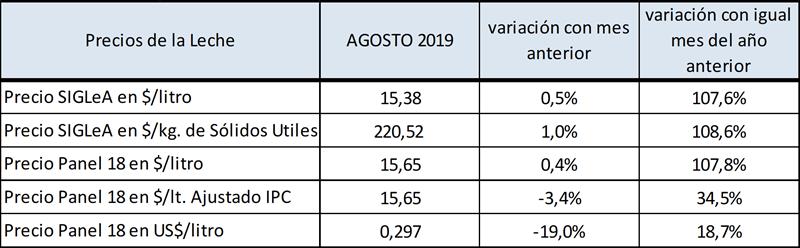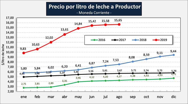 Precios de la leche al Productor – valores a agosto de 2019 16/9/2019