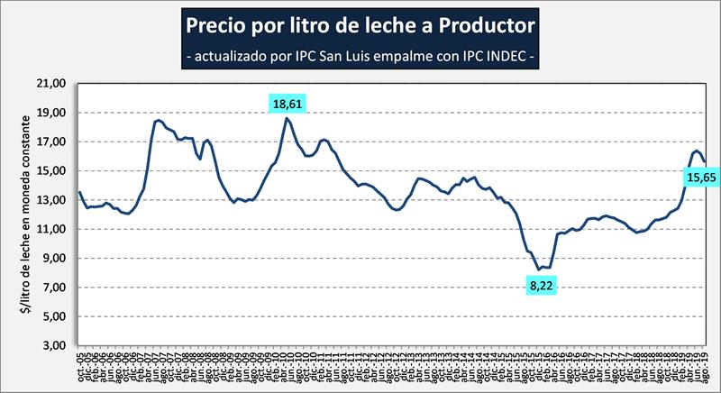 PRECIO DE LA LECHE AL PRODUCTOR – EN PESOS POR LITRO – MONEDA CONSTANTE