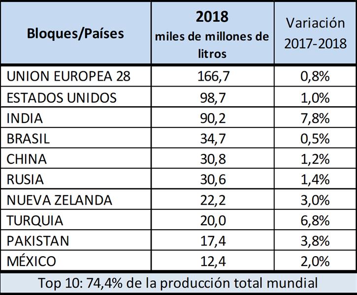 elaborado por el OCLA en base al World Dairy Situation de la FIL 2019