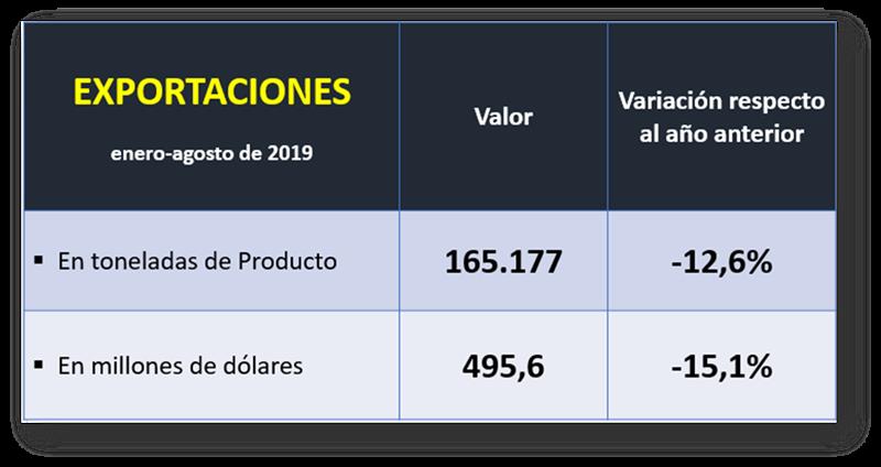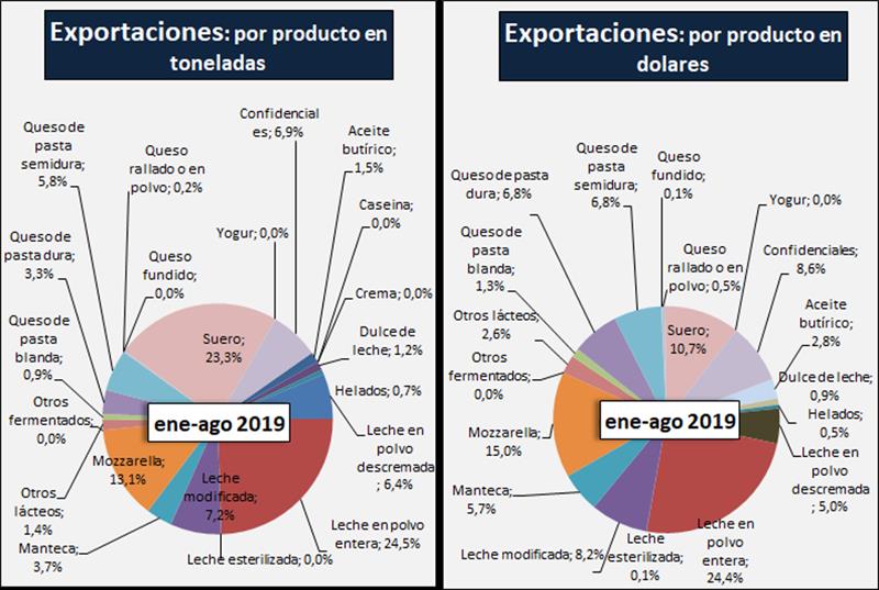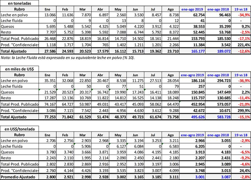 Exportaciones de Productos Lácteos hasta agosto de 2019 9/10/2019