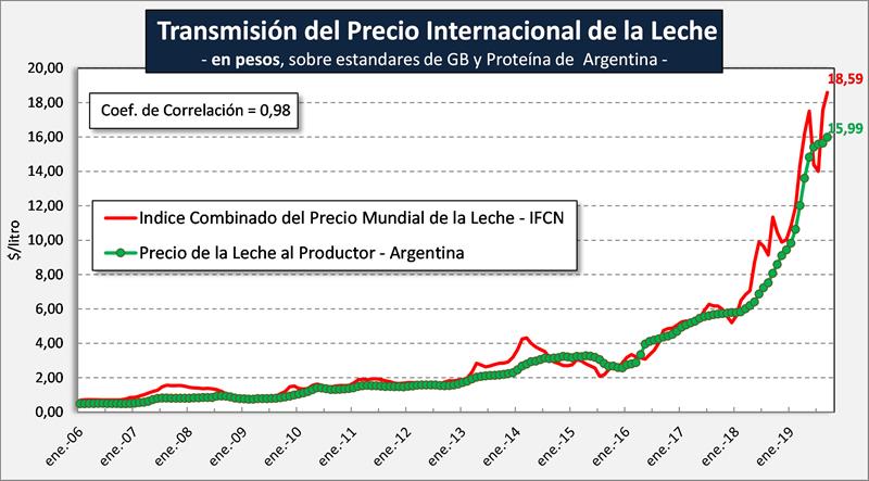Cálculo: 35% del indicador IFCN, precio mundial de la Leche en polvo descremada y la manteca, + 45% del indicador IFCN, precio mundial del Queso y del Suero de leche, + 20% del indicador IFCN, precio mundial de la Leche en polvo entera.