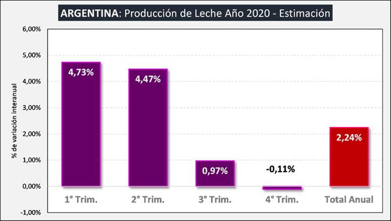 Evolución de la producción al mes de enero de 2020 17/2/2020Como antecedente podemos mencionar que la producción total de leche alcanzo en 2019 los 10.343 millones, es decir, -1,75% respecto al año anterior. ![]() A partir de 2016 la DNL elaboró una nueva serie (que se empalma desde 2015) y que en el gráfico está indicada con la curva roja y responde al siguiente criterio metodológico: http://www.ocla.org.ar/contents/news/details/11971963-produccion-nacional En el mes de enero de 2020 la producción fue de 864,9 millones de litros de leche, este valor representa una caída del 8,6% respecto al mes anterior y un 5,5% más que igual mes del año anterior. La media móvil de los últimos 12 meses muestra una caída del 0,7%, lo cual evidencia la tendencia al crecimiento entre 2019 y la perspectiva 2020. ![]() En el gráfico siguiente, se observa que la producción en enero 2020 está por encima de 2019 y 2017 pero aún está por debajo de 2018 (-2,2%). ![]() En el último gráfico incluimos la proyección para el año 2020, confeccionada los primeros días de este año con datos de 19 industrias que representan alrededor del 60% de la producción total de leche. ![]() elaborado por el OCLA con datos de la DNL-MAGyP