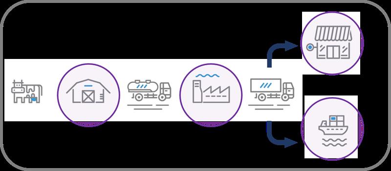 - El eslabón industrial procesa esa materia prima (leche cruda) obteniendo un gran número de productos específicos (los que pueden ser agrupados por familia o “genéricos”), los que tienen valores de mercado (“precios de planchada o de salida de fábrica”).