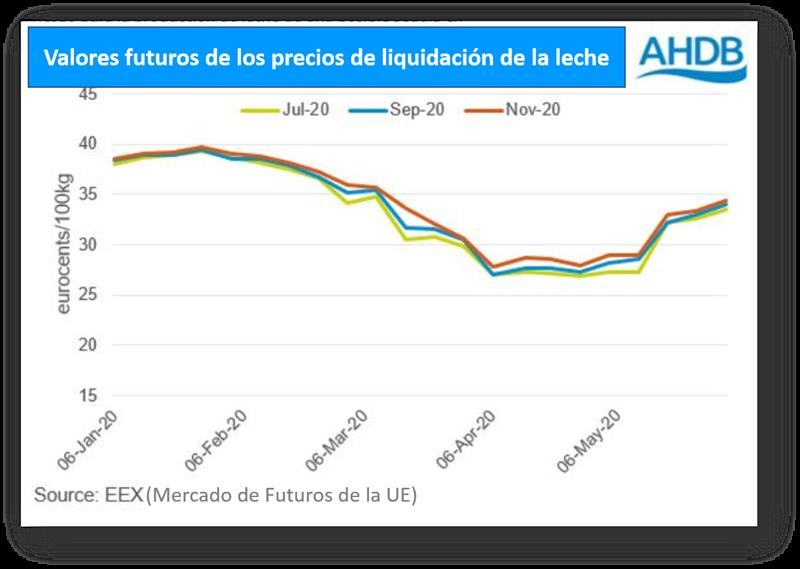 Los precios liquidados en los mercados europeos de futuros de lácteos mejoraron significativamente en la última parte de mayo. Con algunos países europeos comenzando a flexibilizar las medidas de cierre, hubo un impulso a la demanda a medida que la industria hotelera se preparó para reabrir.