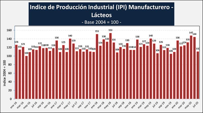 Índice de Producción Industrial Manufacturero – LÁCTEOS - julio de 2020
