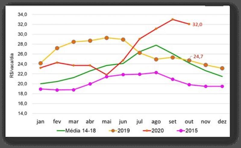 Por lo tanto, es razonable imaginar una caída en los precios pagados a los productores en noviembre (para la leche de octubre); de hecho, algunas empresas ya han reducido los precios en octubre (en los pagos de leche de septiembre), aunque este movimiento no ha sido reflejado en el promedio brasileño calculado por Cepea.