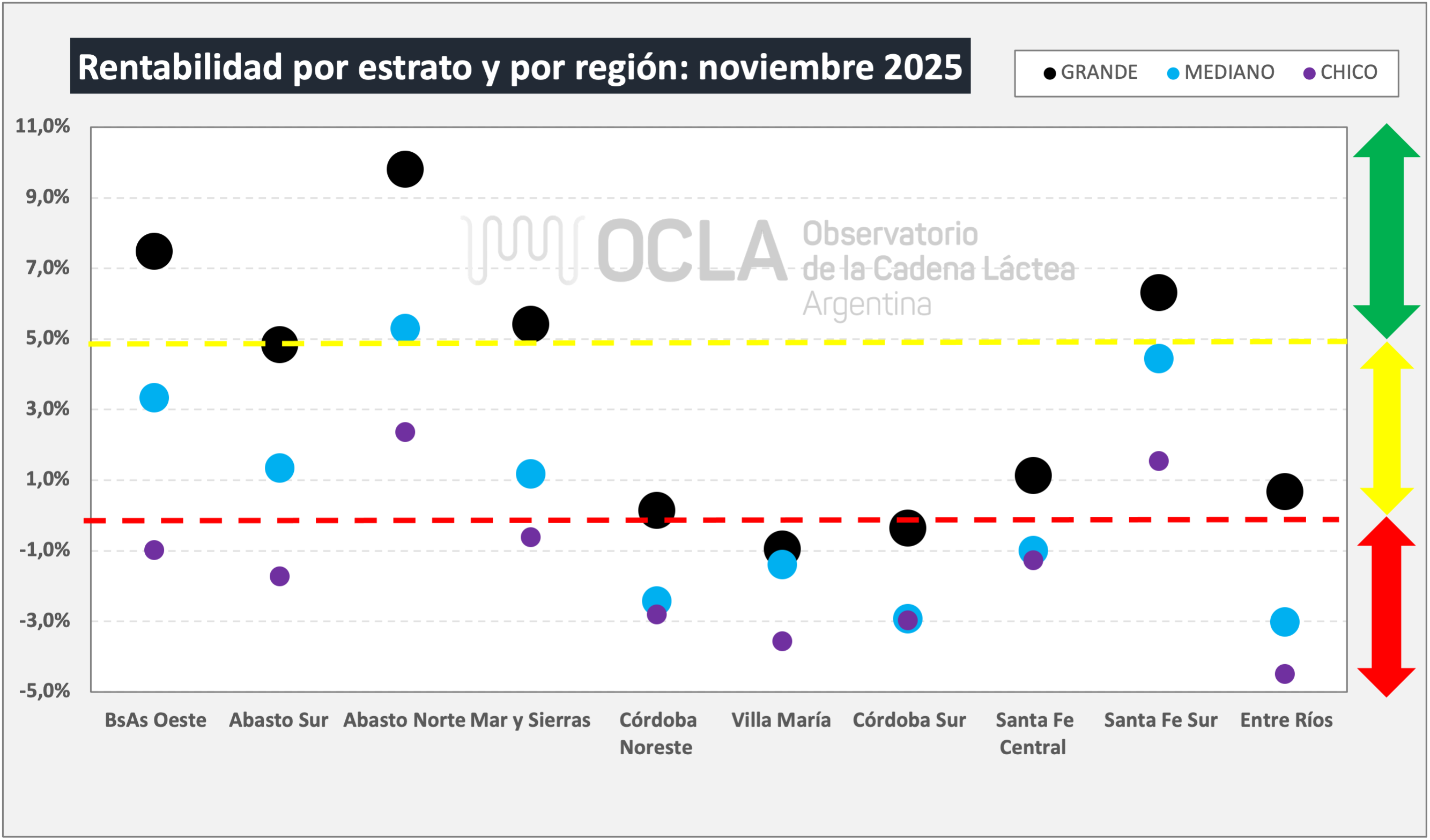 COSTO DE PRODUCCIÓN = (Gastos Directos + Gastos de Estructura + Amortizaciones + Ret. Empresarial) - Recuperos - INGRESO AL CAPITAL = (Ing. Leche + Ing. Carne) - (Gtos Directos + Gtos de Est. + Amort. + Retribución Empresarial) - RENTABILIDAD = (Ingreso al Capital / Capital ) x 100 Se tomaron los 3 estratos de cada región y los costos y rentabilidades se promediaron en función a la producción y cantidad de tambos.