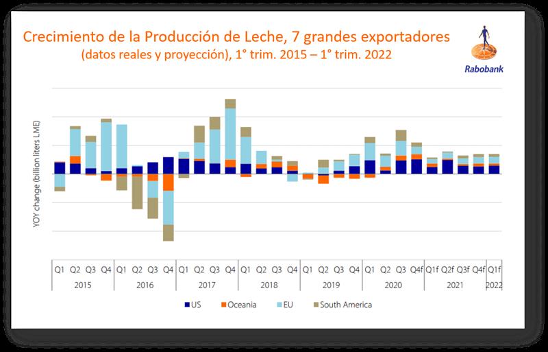 Sin embargo, Rabobank proyecta una tasa de crecimiento más moderada en 2021, aunque positiva en todas las regiones, por un total de 2.700 millones de litros.