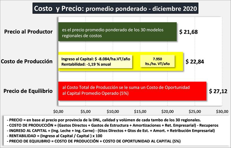 Producción de $ 22,84/litro y el Precio de Equilibrio de $ 27,12/litro.