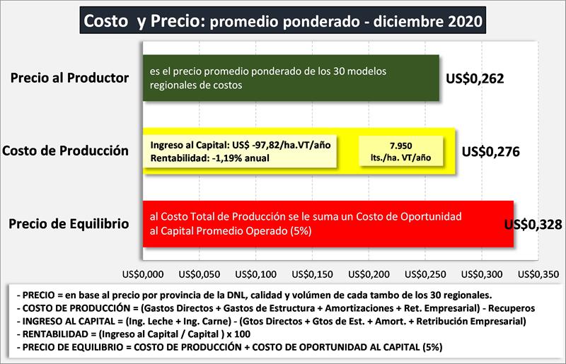Costo de Producción de US$ 0,276/litro y el Precio de Equilibrio de US$ 0,328/litro.