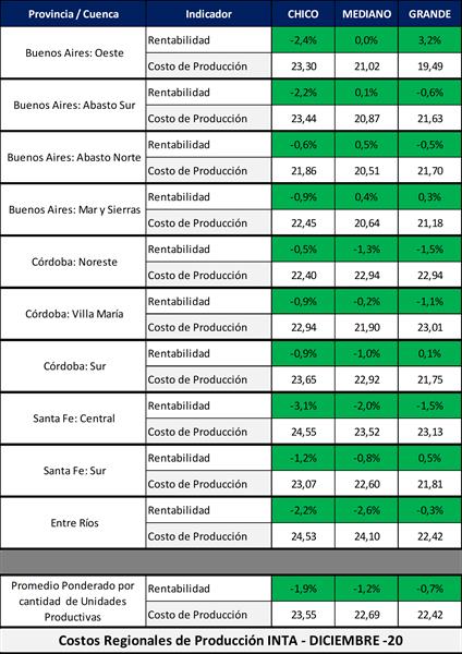 elaborado por el OCLA sobre la publicación de Costos Regionales de Producción - INTA