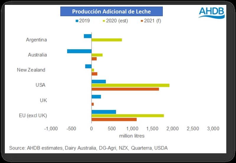 Se prevé que el suministro mundial de leche de los principales exportadores de productos lácteos muestre un crecimiento moderado en 2021. Se espera que las vacunas y la recuperación económica mejoren la confianza del consumidor a medida que avanza el año. Ha habido una demanda firme de países que han podido controlar el virus y están experimentando un crecimiento económico. Aquellos que todavía están luchando contra los brotes y la depresión de la demanda de servicios de alimentos continúan corriendo el riesgo de una recesión económica, lo que podría afectar los niveles de importación hasta 2021.