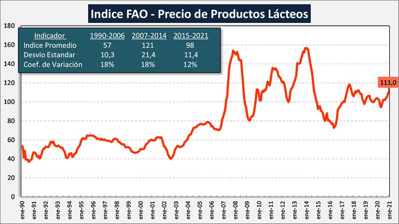 Indice de Precios de los Lácteos de FAO 5/2/2021