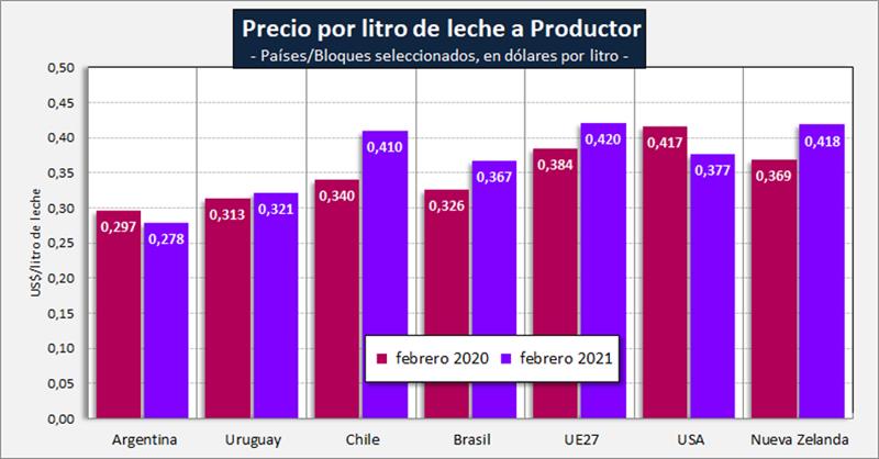 Fuentes: DNL-MAGyP, INALE, ODEPA, CEPEA/ESALQ USP, EMMO, USDA y CLAL, respectivamente.
