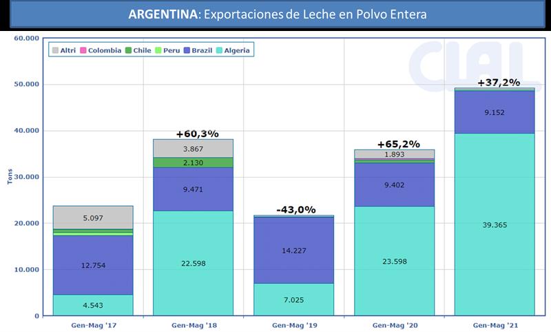En 2021, Argentina se convertirá en el principal país proveedor de LPE de Argelia, ganando participación de mercado en comparación con Nueva Zelanda. En el período enero-mayo de 2021, las exportaciones de LPE de Argentina a Argelia ascendieron a 39.365 toneladas (+ 66,8% en comparación con el mismo período en 2020).