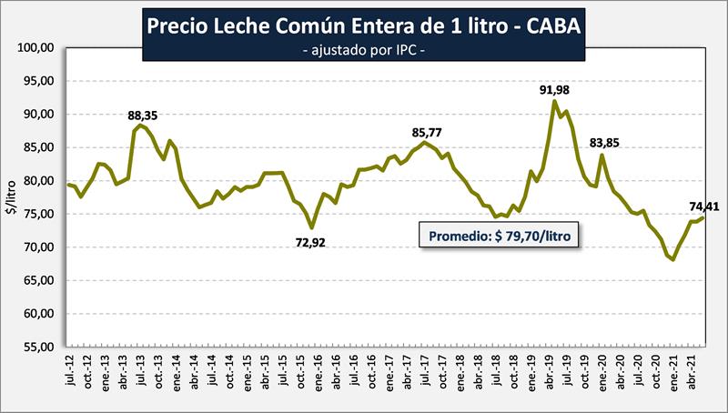 Según datos publicados por la Dirección General de Estadísticas y Censos - Ministerio de Hacienda del Gobierno de la Ciudad de Buenos Aires, los precios de los productos lácteos de esta canasta, tuvieron un crecimiento mensual promedio ponderado del 5,4% e interanual del 49,2%. El ponderado es elaborado por OCLA sobre el mismo criterio mencionado para la canasta GBA de INDEC.