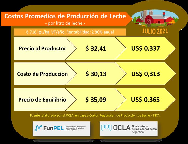 Costos Regionales de Producción de Leche, valores actualizados a JULIO del 2021 23/8/2021