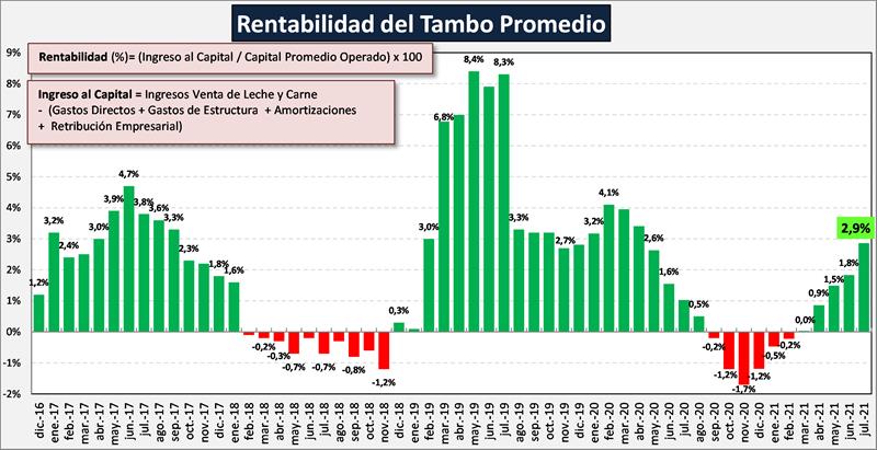 Cuando el precio comienza a superar al Costo de Producción, se genera Ingreso al Capital positivo y por ende Rentabilidad. La decisión de evaluar otra alternativa como destino del capital, surge de comparar la tasa de rentabilidad de la producción de leche y la tasa de la inversión alternativa.