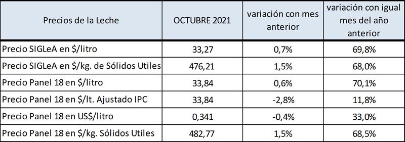Precios de la leche al productor – octubre 2021 19/11/2021
