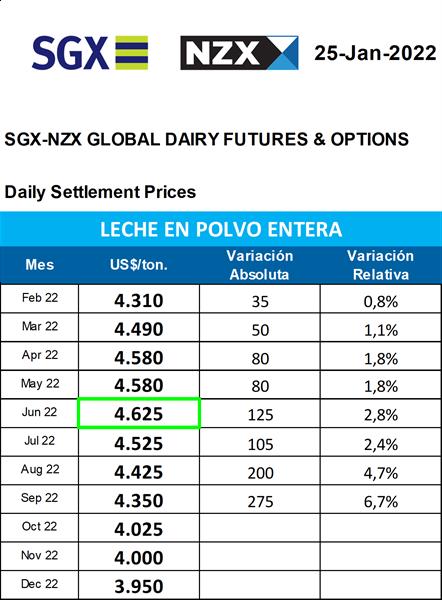 Mercado de Futuros - Leche en Polvo Entera 26/1/2022
