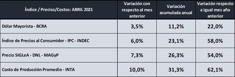 Desde marzo de 2021 el precio al productor (aunque con altibajos) superó el costo de producción de leche (relación superior a 1), pero en ningún momento alcanza al precio de equilibrio, que exige una rentabilidad sobre el capital operado del 5% anual, ya que la rentabilidad promedio de ese período fue del 1,6% con extremos entre 0,0% y 3,3%. Lamentablemente en abril el costo supera al precio percibido y genera una tasa de rentabilidad negativa y una relación por debajo de 1 respecto al precio.