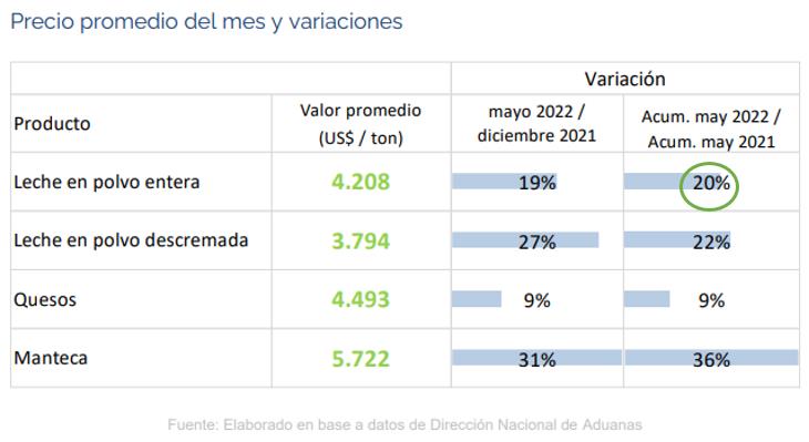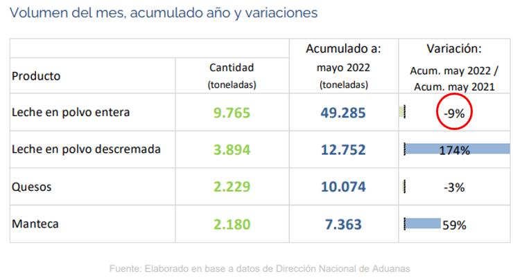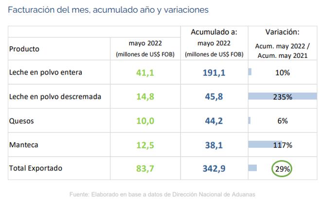 URUGUAY: exportaciones de lácteos - mayo 2022