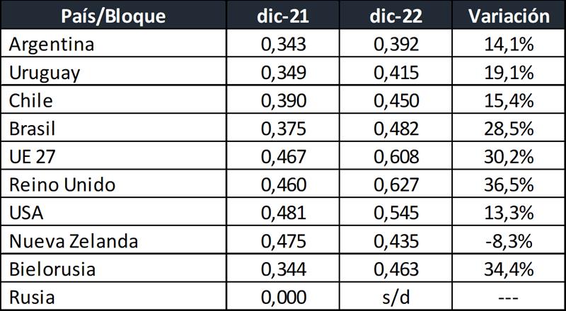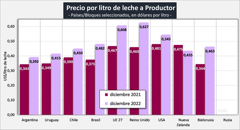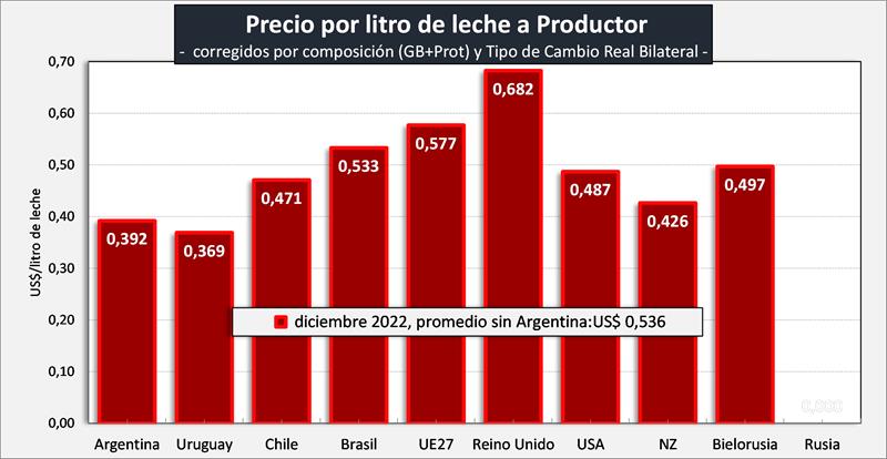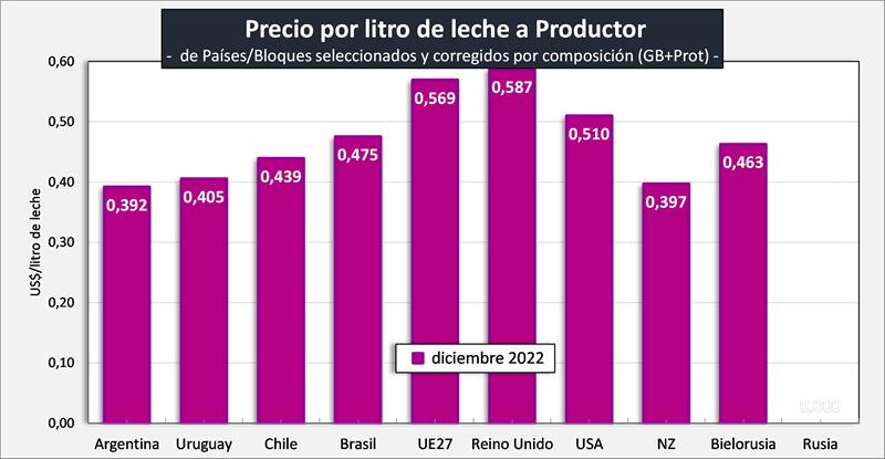 Fuentes: DNL-MAGyP, INALE, ODEPA, CEPEA/ESALQ USP, MilkPoint, EMMO, AHDB, USDA y CLAL, respectivamente.
