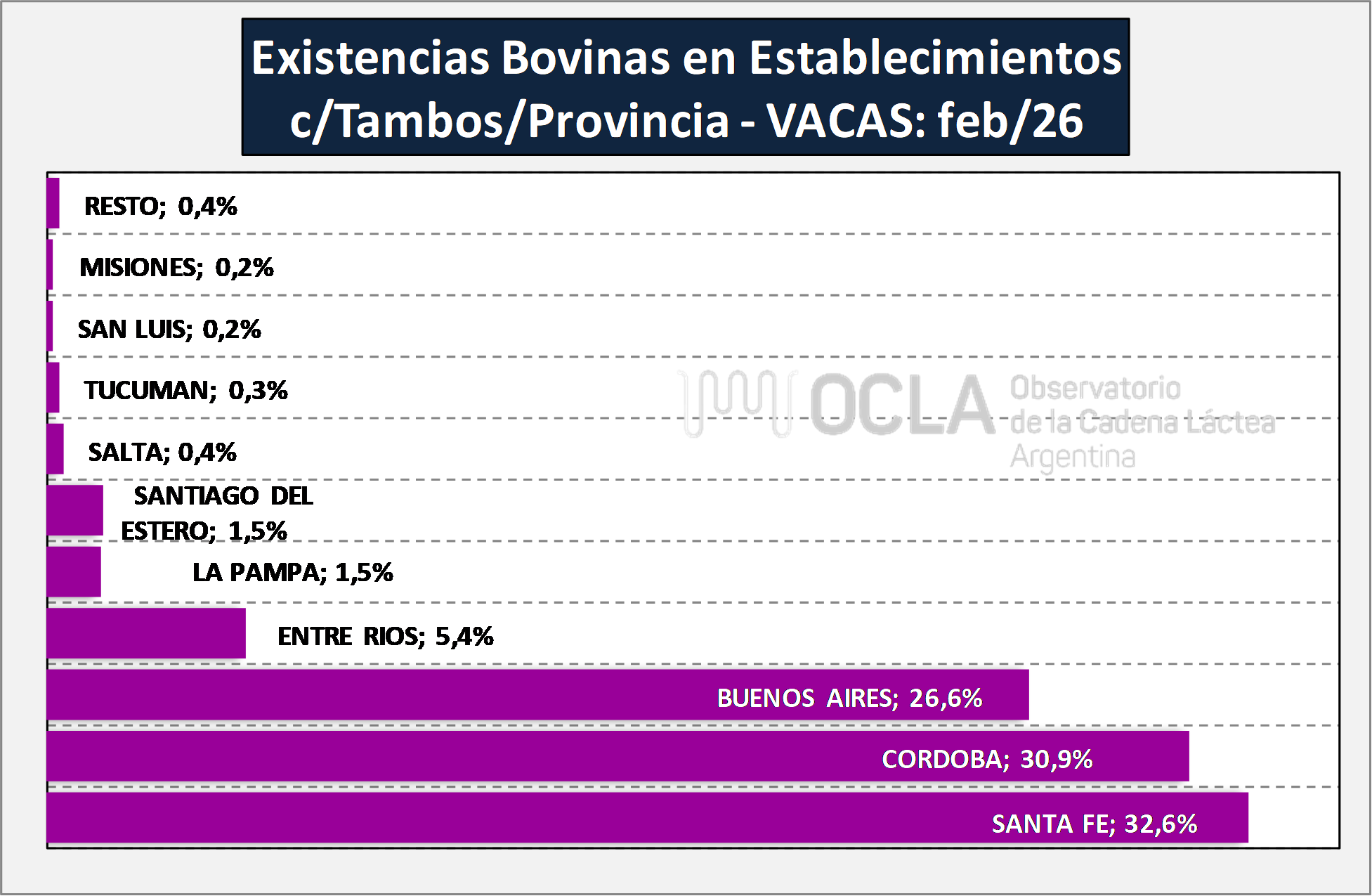 A partir de la información existente en el Sistema de Gestión Sanitaria (SGS) y el Sistema Integrado de Gestión de Sanidad Animal (SIGSA), se determinan las existencias de ganado bovino por categoría desagregadas por provincia, junto con la cantidad de establecimientos y unidades productivas en las que se encuentran las mismas; para todas aquellas unidades productivas que declaran realizar la actividad de tambo.