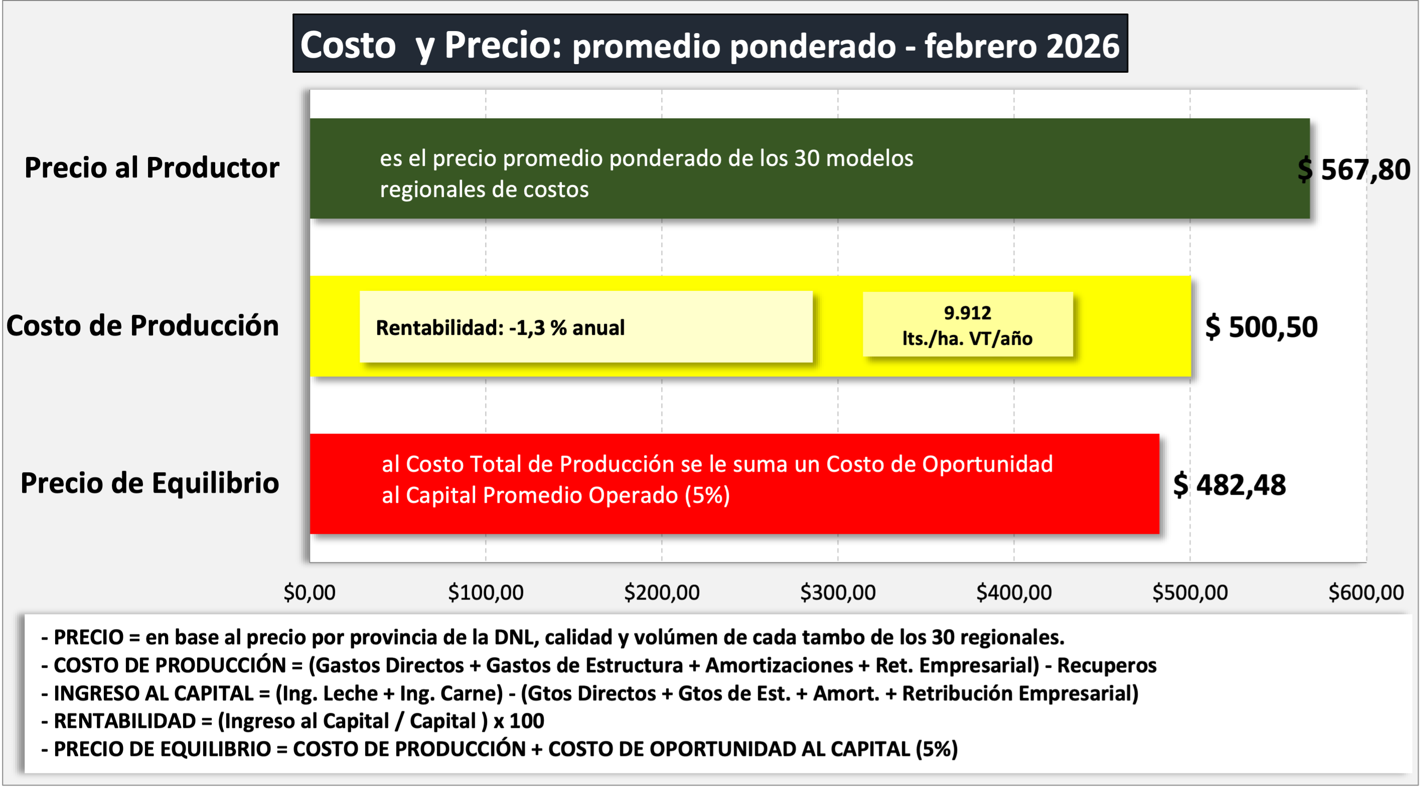 INGRESO AL CAPITAL = (Ingreso Venta de Leche + Ingreso por Carne) – (Gastos Directos + Gastos de Estructura + Amortizaciones + Retribución Empresarial)