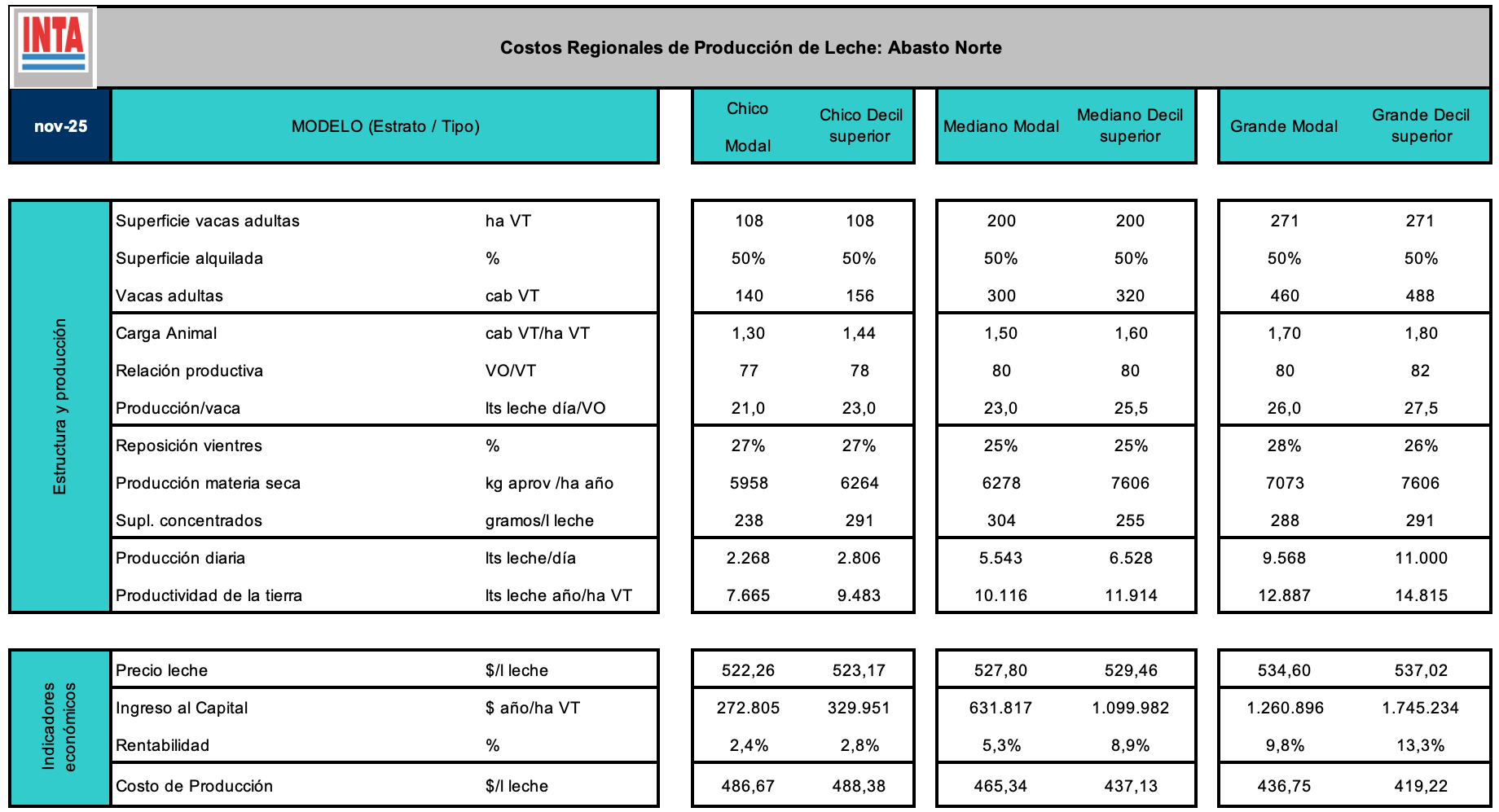 Los modelos se definen como representaciones simplificadas de la realidad. Partiendo de este concepto, en esta sección se presentan los costos de producción de leche asociados a modelos que reflejan a los sistemas productivos más frecuentes (modales) en las diferentes cuencas lecheras y para diferentes escalas de tamaño. Los mismos fueron construidos en talleres realizados con profesionales referentes de las diferentes regiones. Asimismo, se presentan los costos de producción de leche asociados a sistemas productivos reales del decil superior (10% superior en su resultado económico). En general, los costos presentan una alta dispersión respecto al valor modal, siendo sensibles a ciertas variables técnicas cuyas relaciones se presentan en los gráficos de correlación.