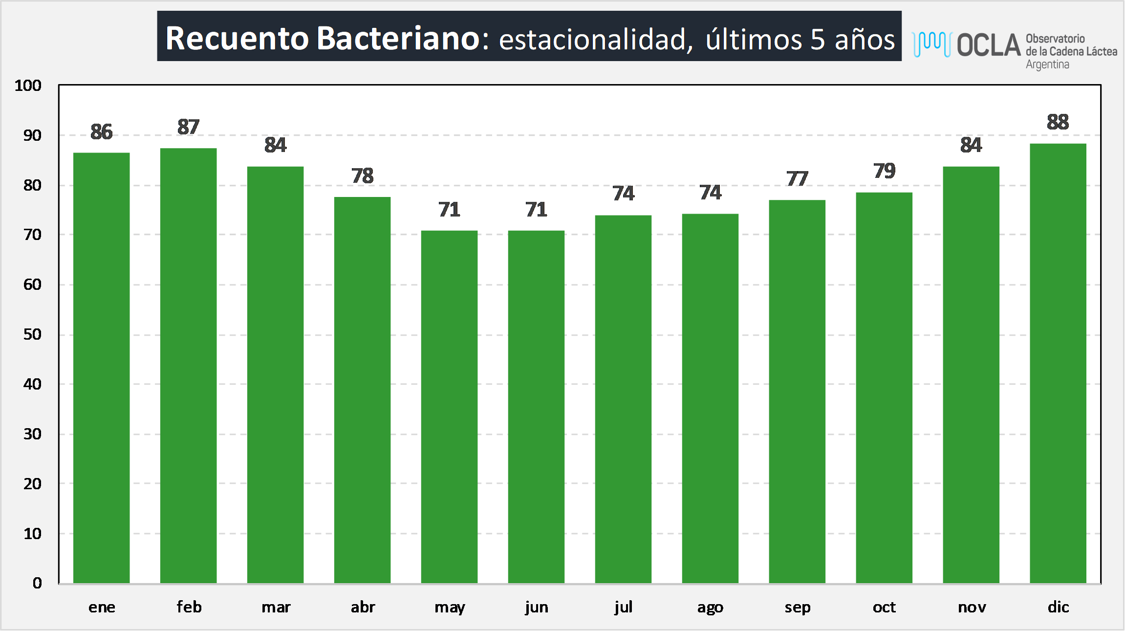 Recuento Bacteriano: estacionalidad, últimos 5 años